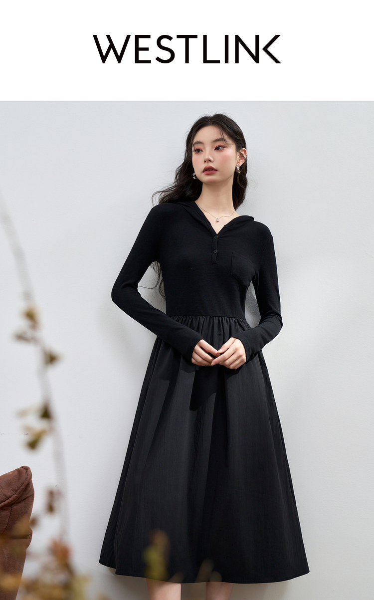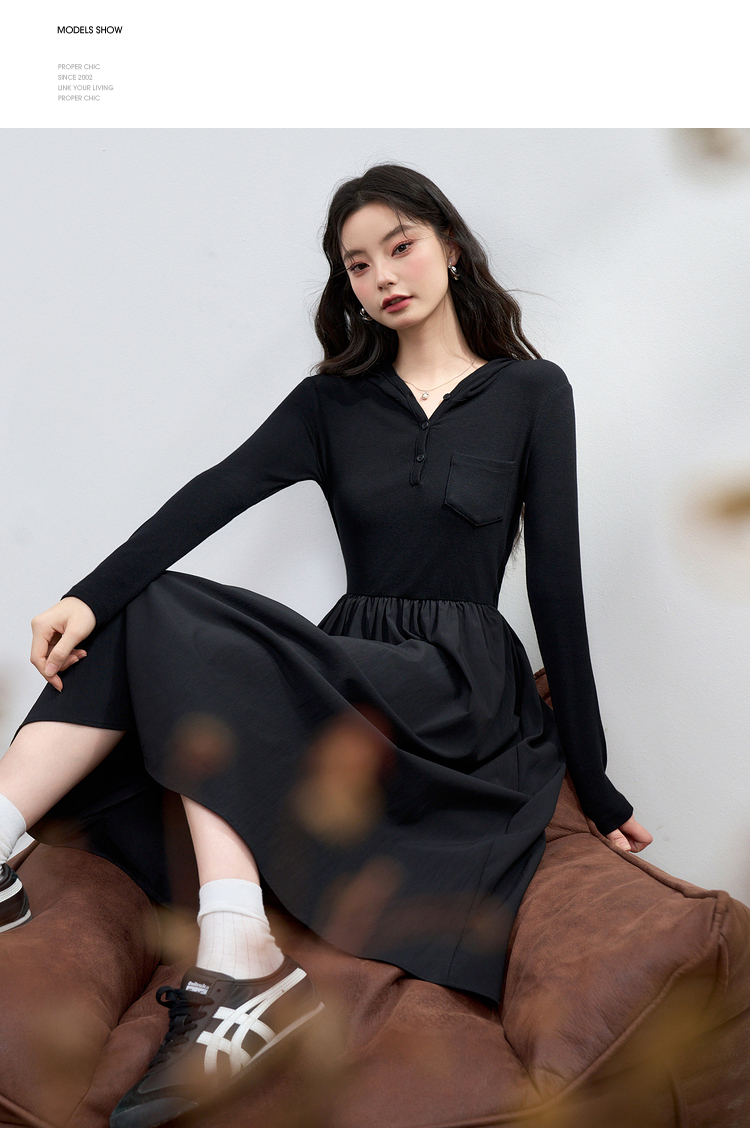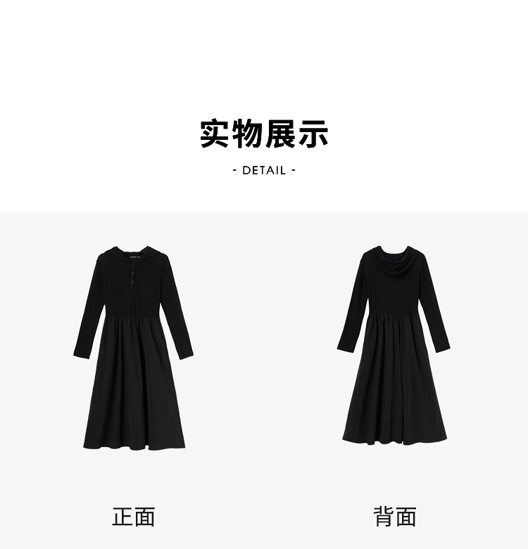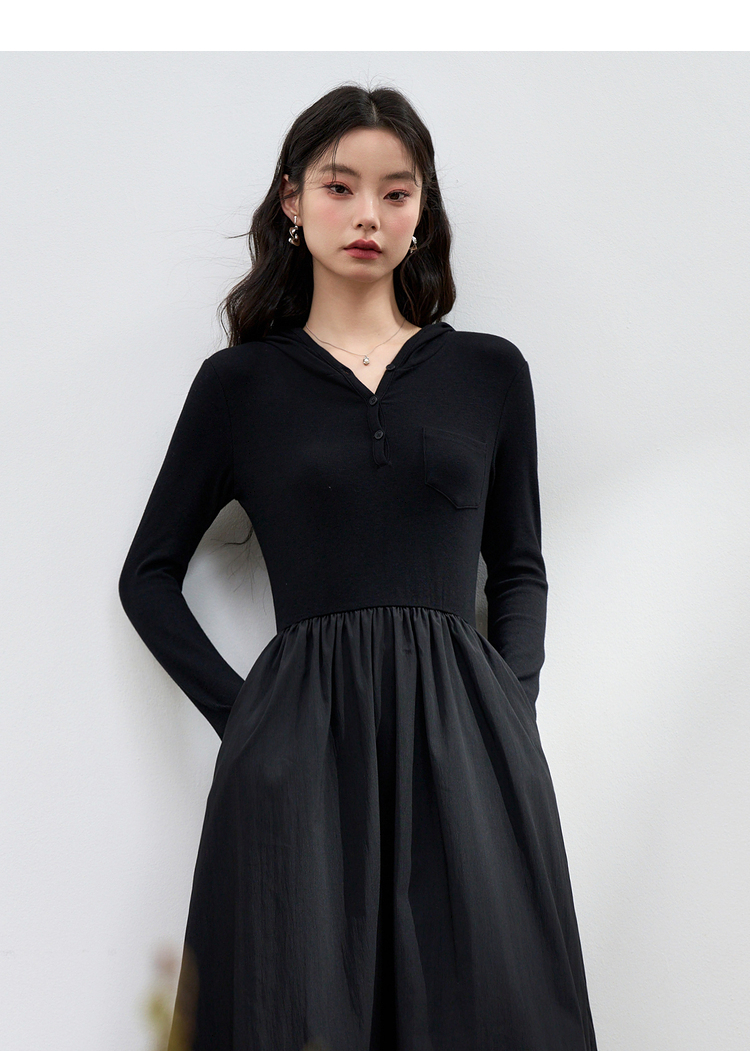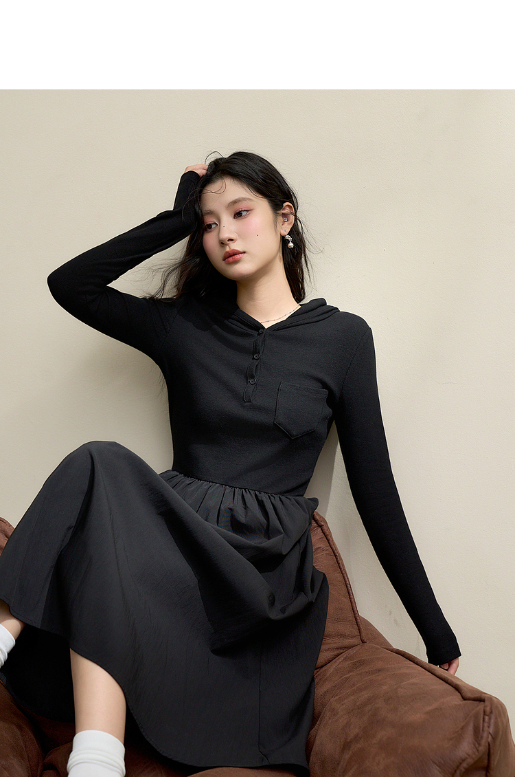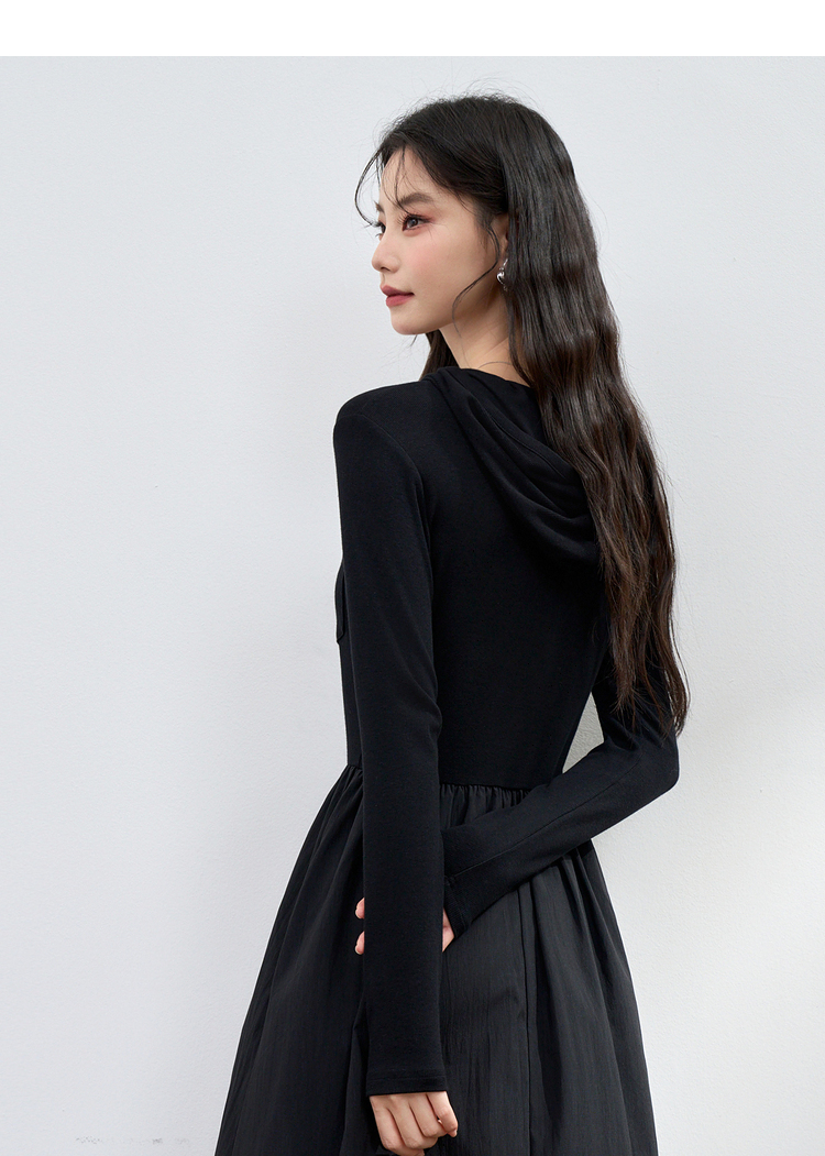 运动辣妹风连帽拼接长袖连衣裙女秋季A摆肌理感连衣裙V3442513