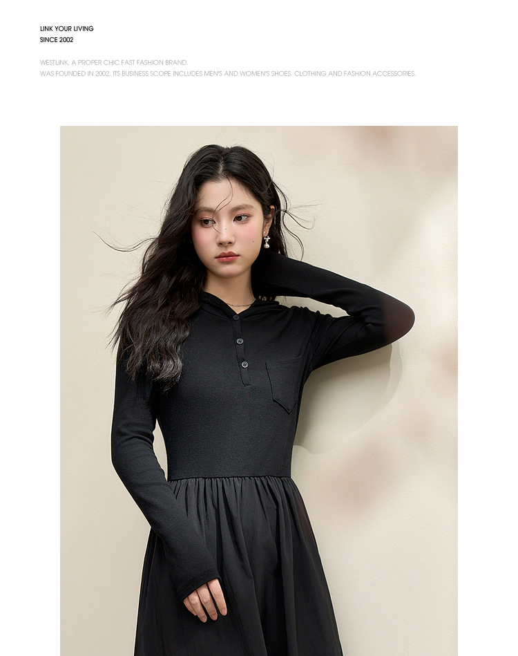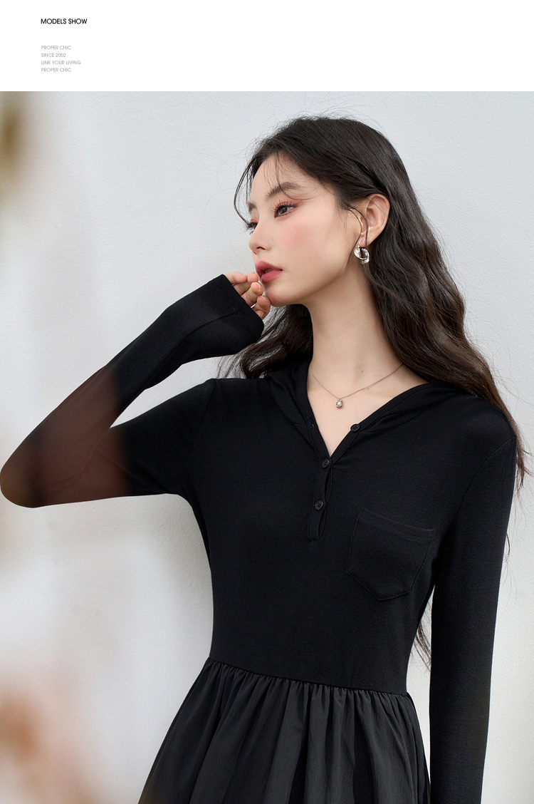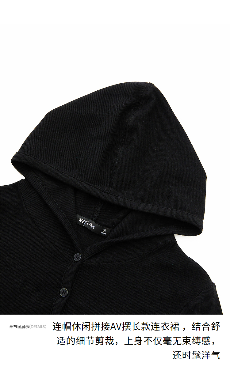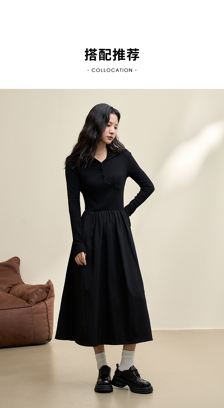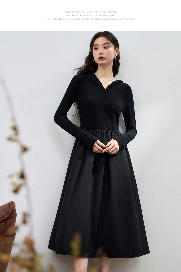 运动辣妹风连帽拼接长袖连衣裙女秋季A摆肌理感连衣裙V3442513