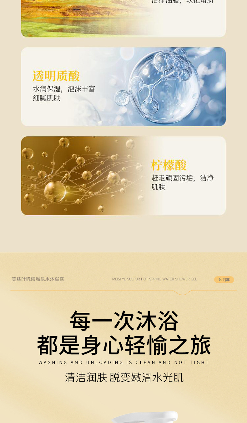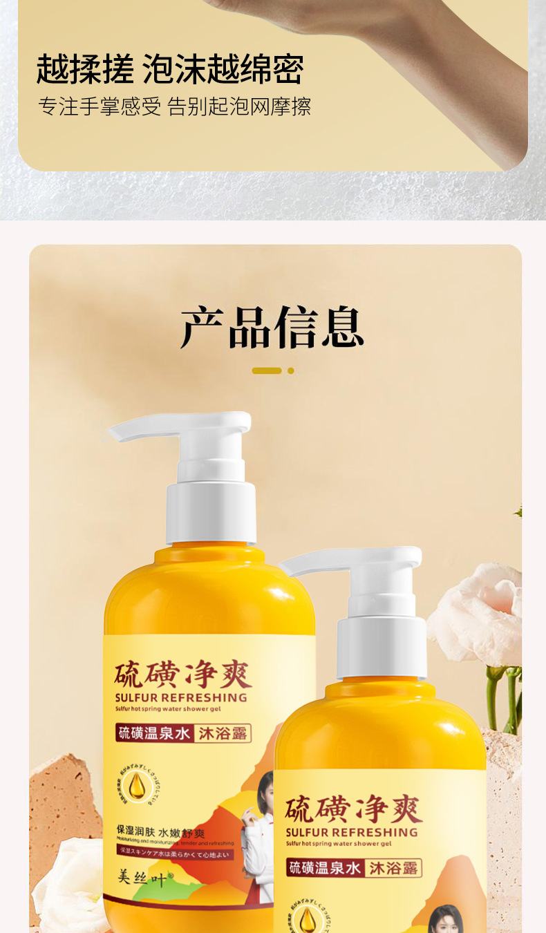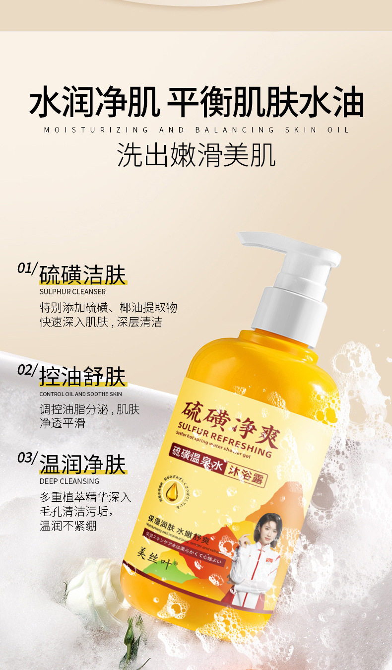 「9.9元到手!500ml装,限1000瓶」美丝叶硫磺净爽沐浴露 清爽洁净洗后留香水润清爽沐浴清洁露