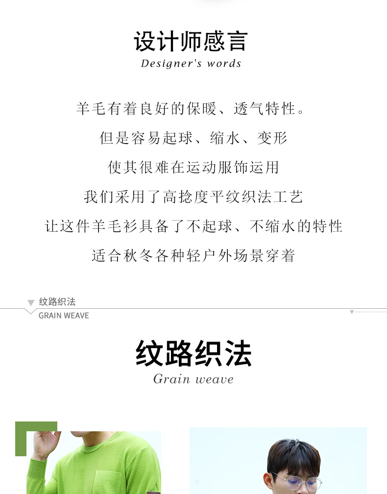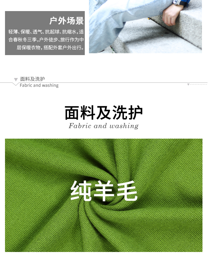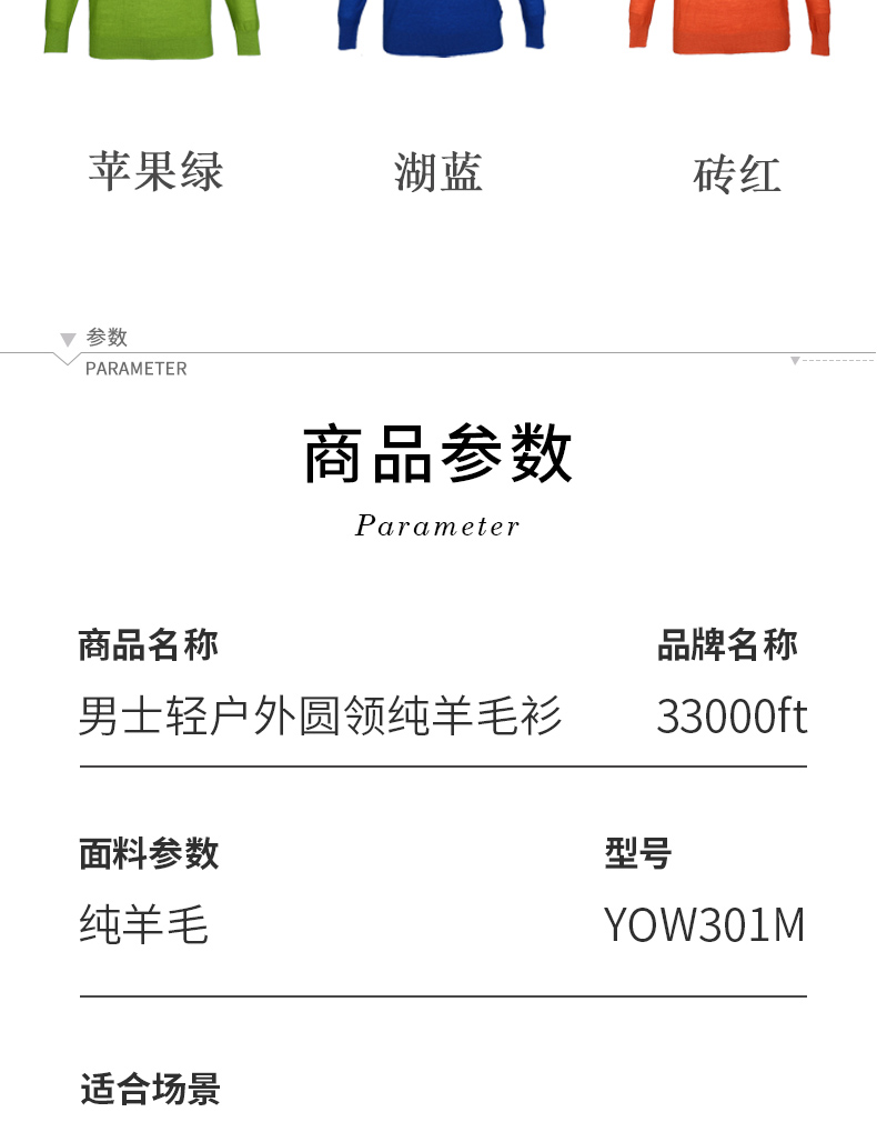 33000ft户外休闲衣男商务户外轻薄保暖透气柔软亲肤圆领羊毛衫