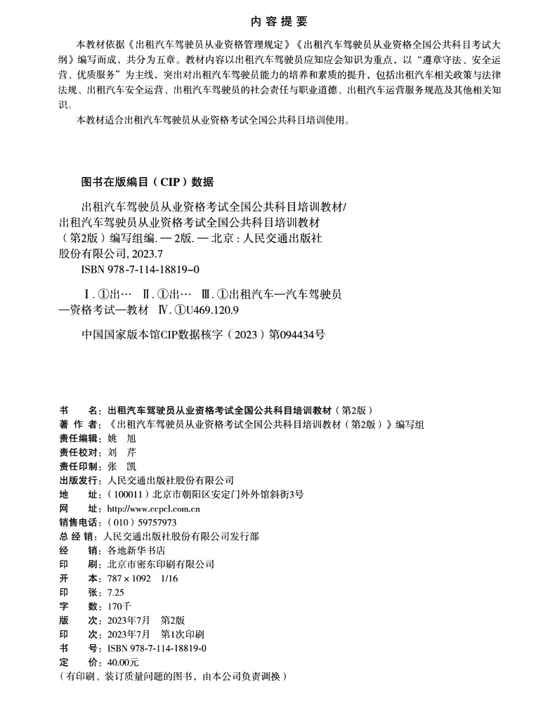 书名:出租汽车驾驶员从业资格考试全国公共科目培训教材(第2版)
