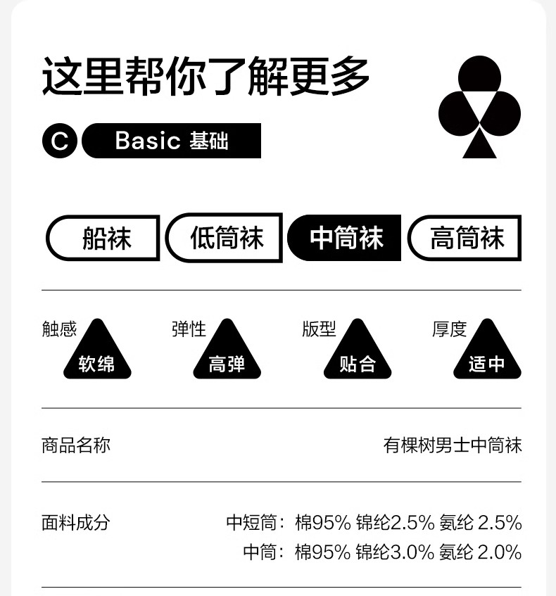 有棵树纯棉防臭男士中筒袜5双装C-O4057