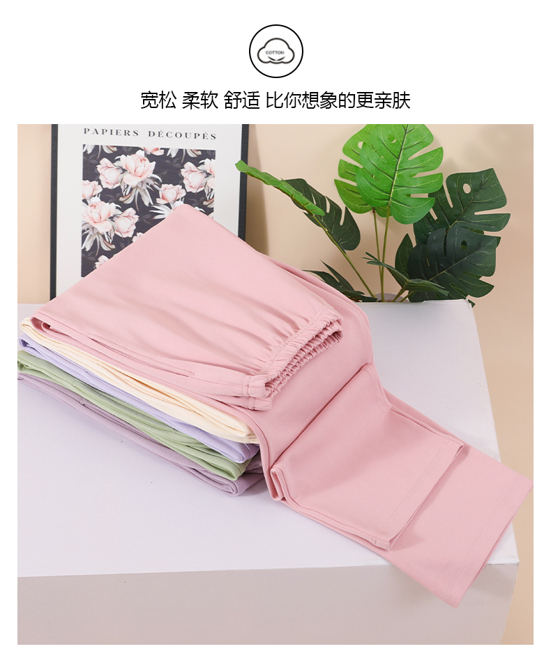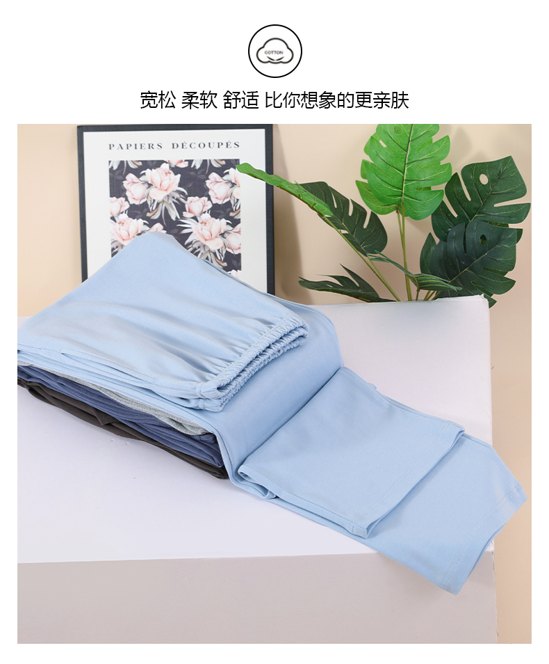 自然醒栖心情侣男女单裤100%棉居家睡裤QH