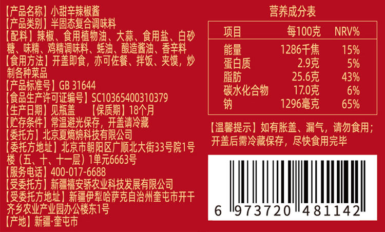 【老饭骨】小甜辛新疆辣椒酱220g雪莲天椒调味微辣甜辣拌饭拌面下饭