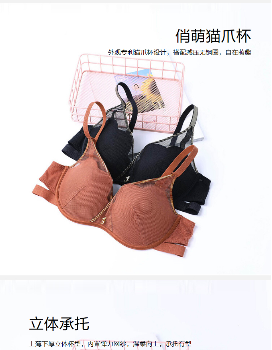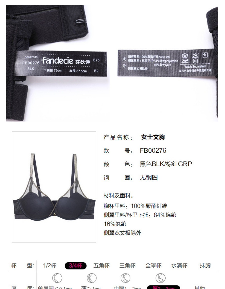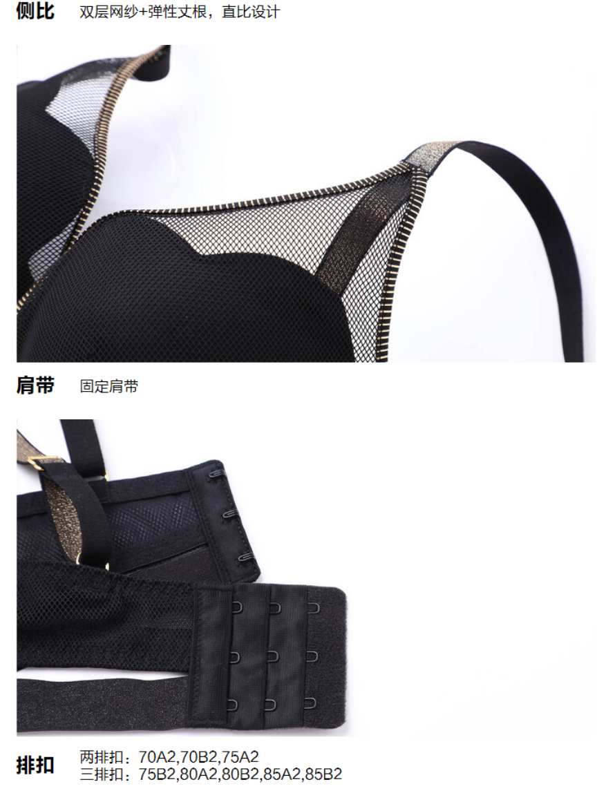 芬狄诗网纱厚杯小胸上托聚拢无钢圈文胸FB00276