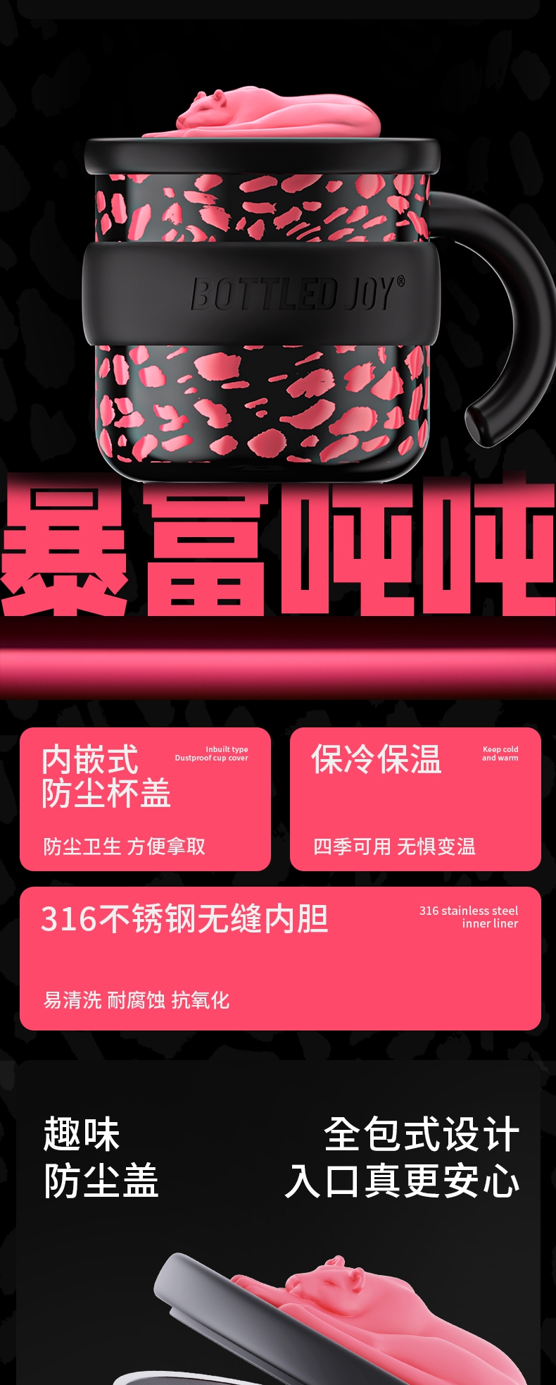 暴富吨吨316不锈钢内胆办公桌面保温杯子