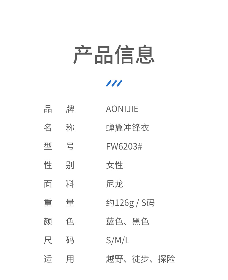 奥尼捷高端女款轻如鸿毛越野跑冲锋衣跑步运动防风防水户外专业压胶风衣/FW6203