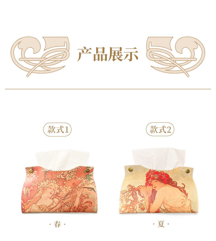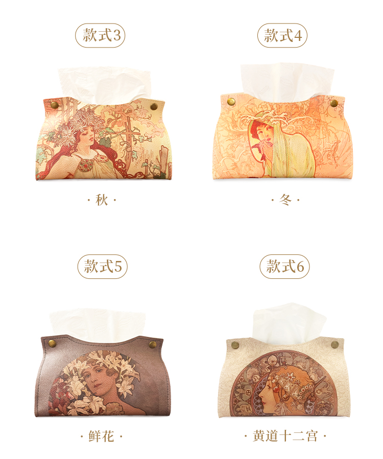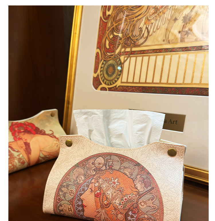 穆夏繁花 · 美术馆文创纸巾盒抽纸盒ins家用客厅欧式皮革高档餐巾纸抽盒