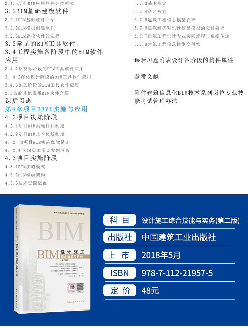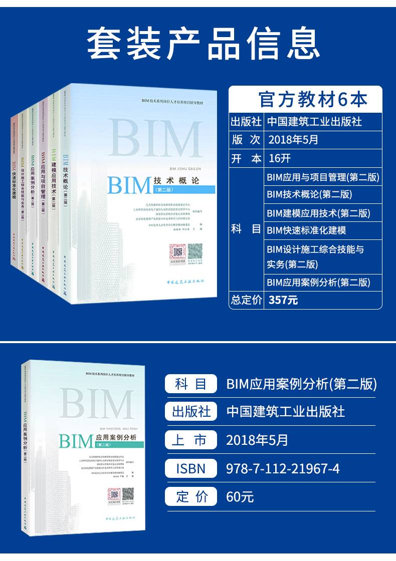 备考2020全国BIM工程师专业技能培训考试教材 第二版 BIM建模应用技术应用案例分析 技术概论/项目管理/设计施工BIM快速标准化建模