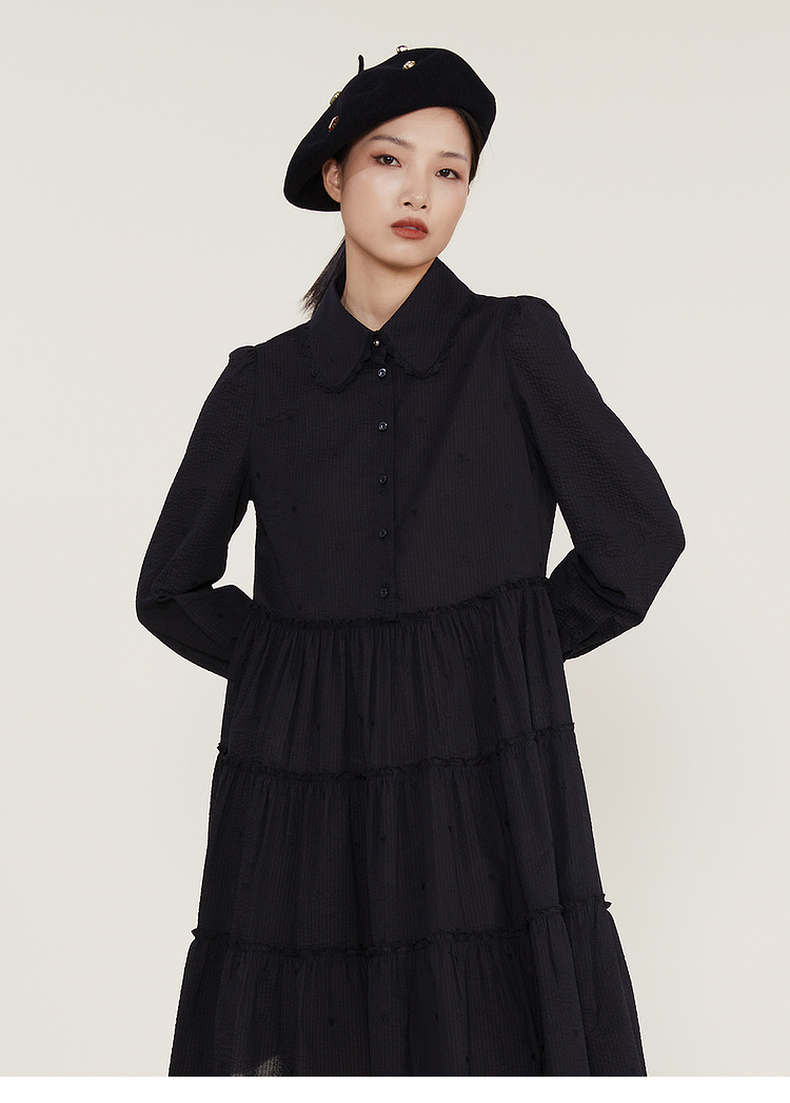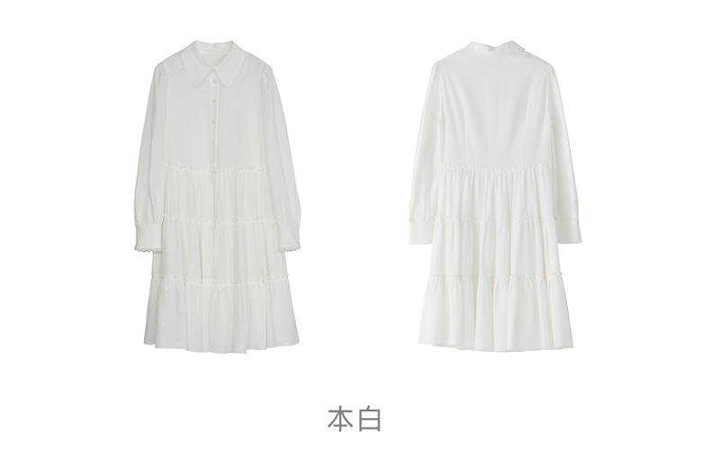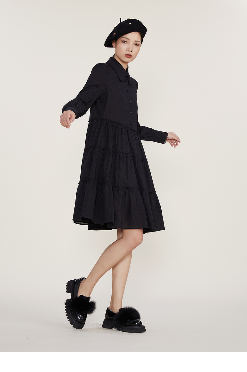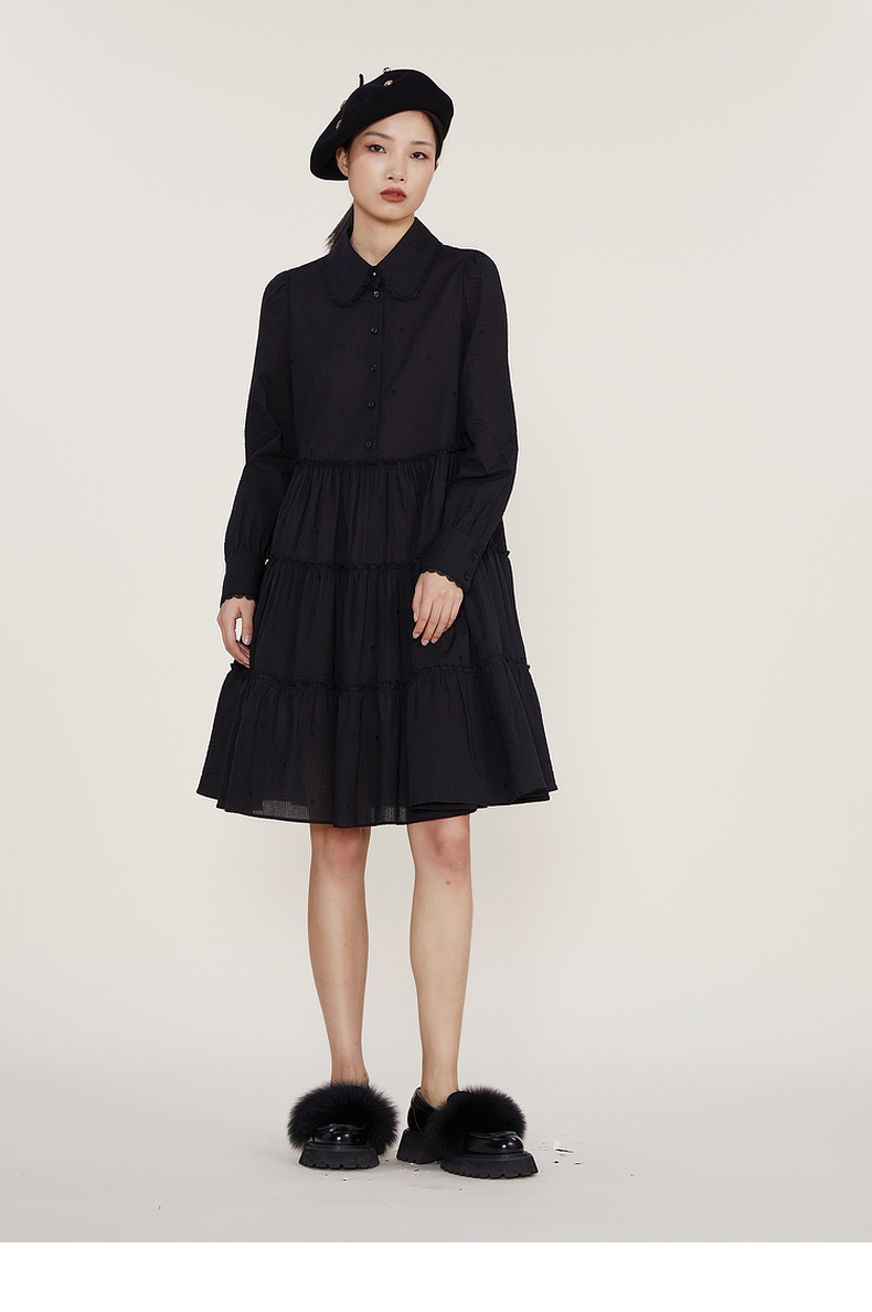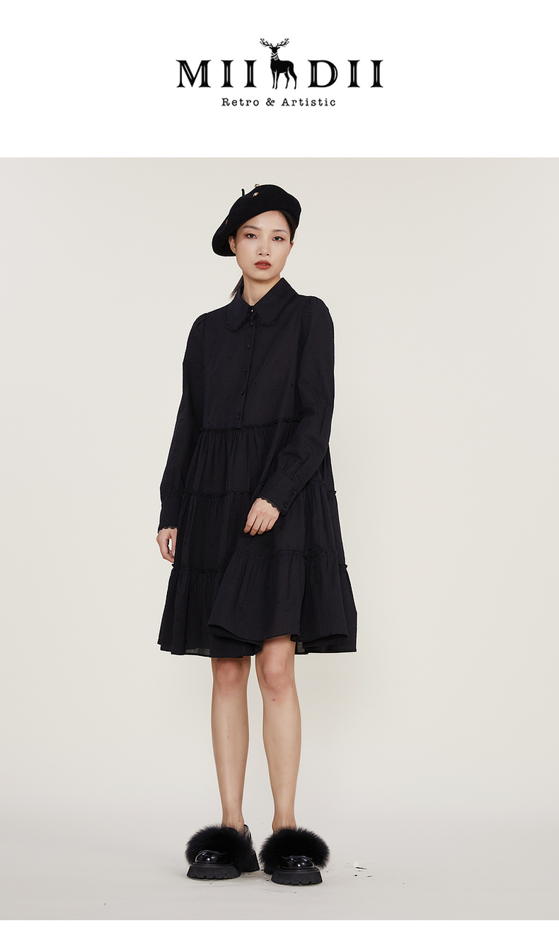 谜底2022冬新款纯棉中长款连衣裙女纯色收腰裙塔裙长袖224ML1682