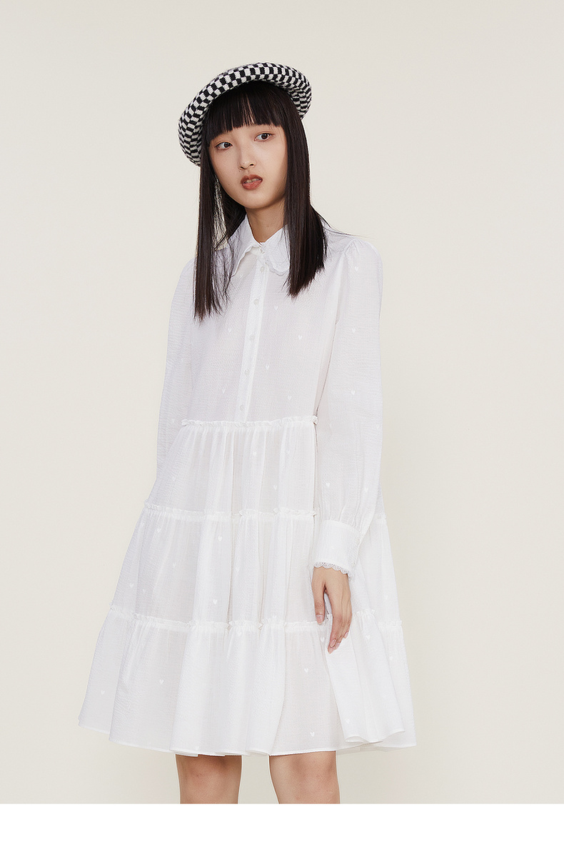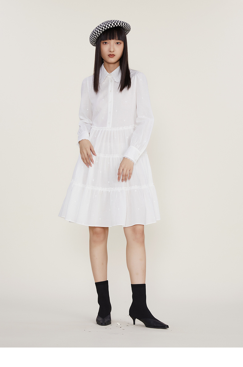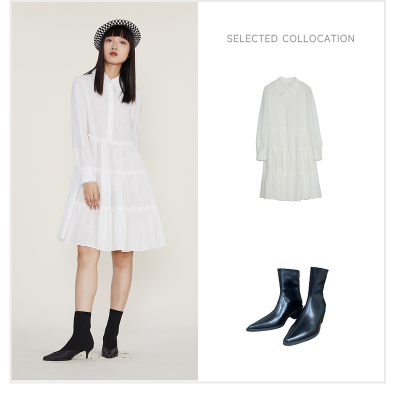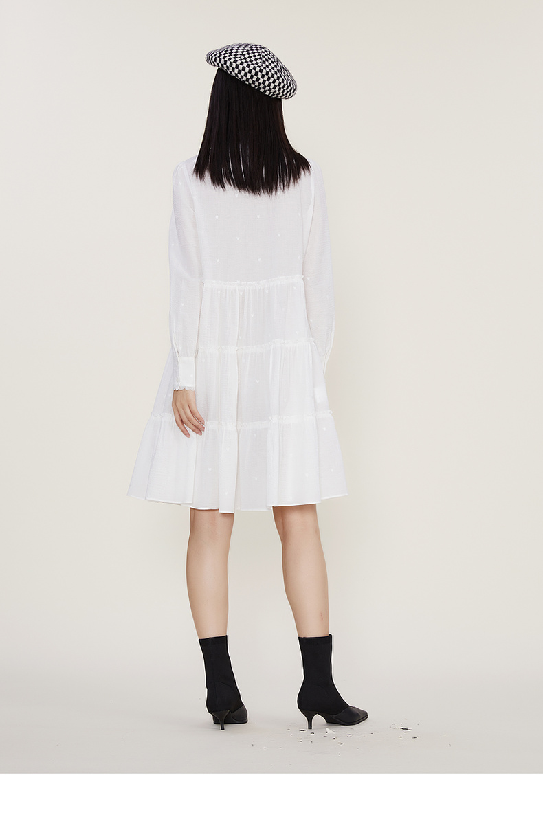 谜底2022冬新款纯棉中长款连衣裙女纯色收腰裙塔裙长袖224ML1682
