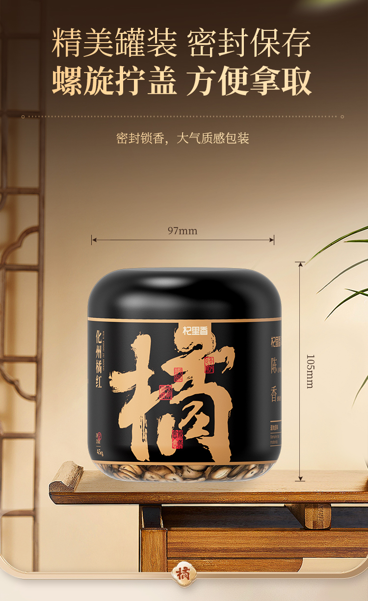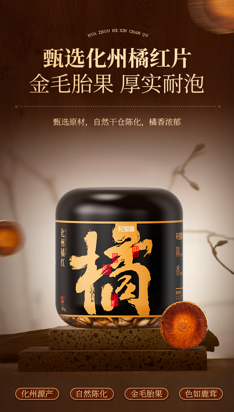 【杞里香化州橘红45g】汤色透亮,陈香四溢广东化州核心产区45g圆罐化州橘红