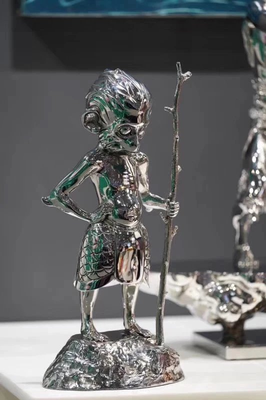 王瑞琳 郑晓淳这件作品是艺术家悟空作品的一部分,悟空系列主要借用猴王形象来探讨东方的英雄主义和平衡之道。 作品中一只花果山上的小猴,灵感来自艺术家夫妇的孩子,作为父母把对孩子的寄托,用这种形式具象的表达了出来:不求齐天称王,只愿快乐成长,在人生道路上常怀勇气和梦想。