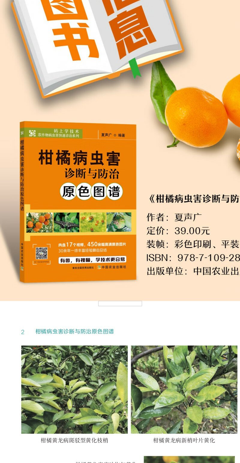 柑橘病虫害诊断与防治原色图谱【官方正版,可开发票,下单时留开票信息和电子邮箱】
