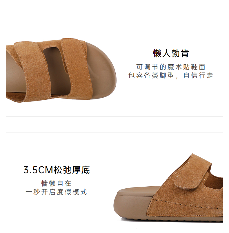 伊伴夏季懒人勃肯拖魔术贴凉鞋B25310801