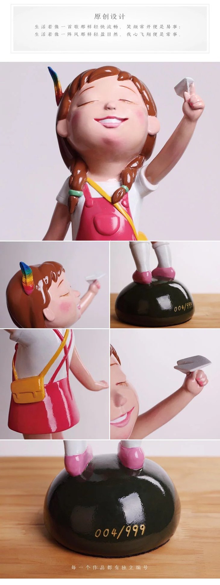 艺术家庄凯凯限量版雕塑《玩纸飞机的女孩》尺寸:24 x 20 x 46cm材质:玻璃钢 手绘着色版数:99