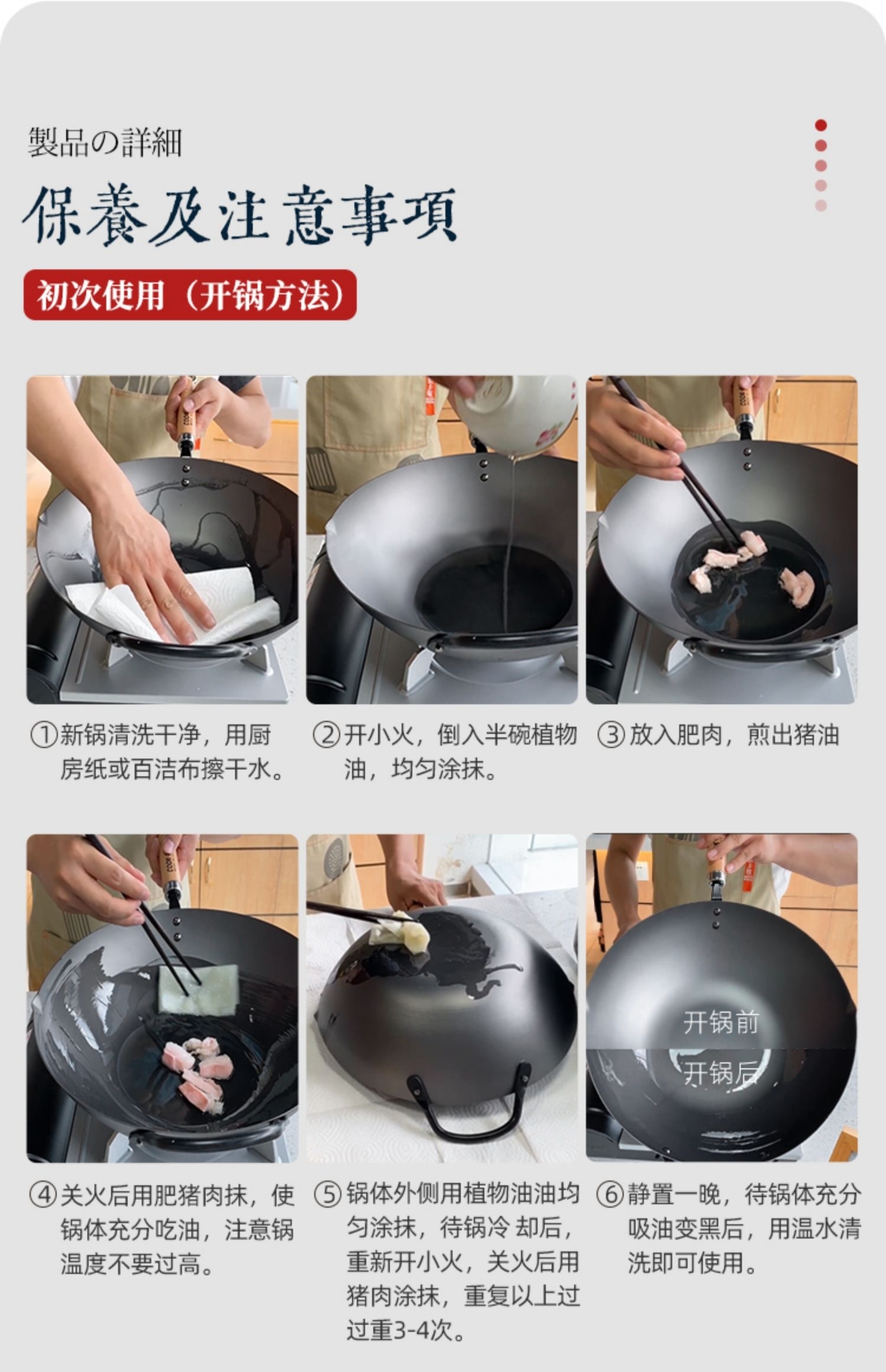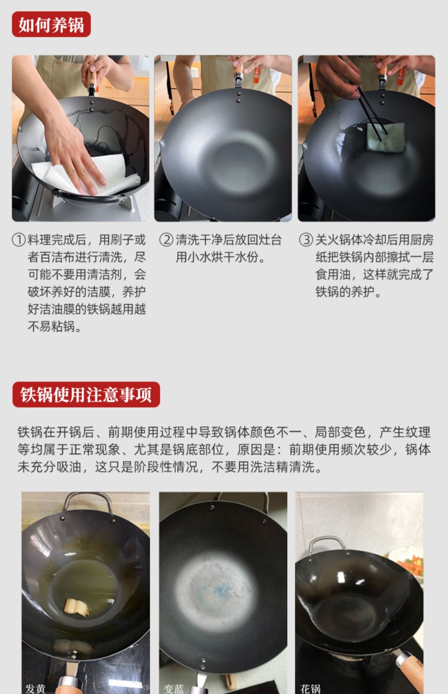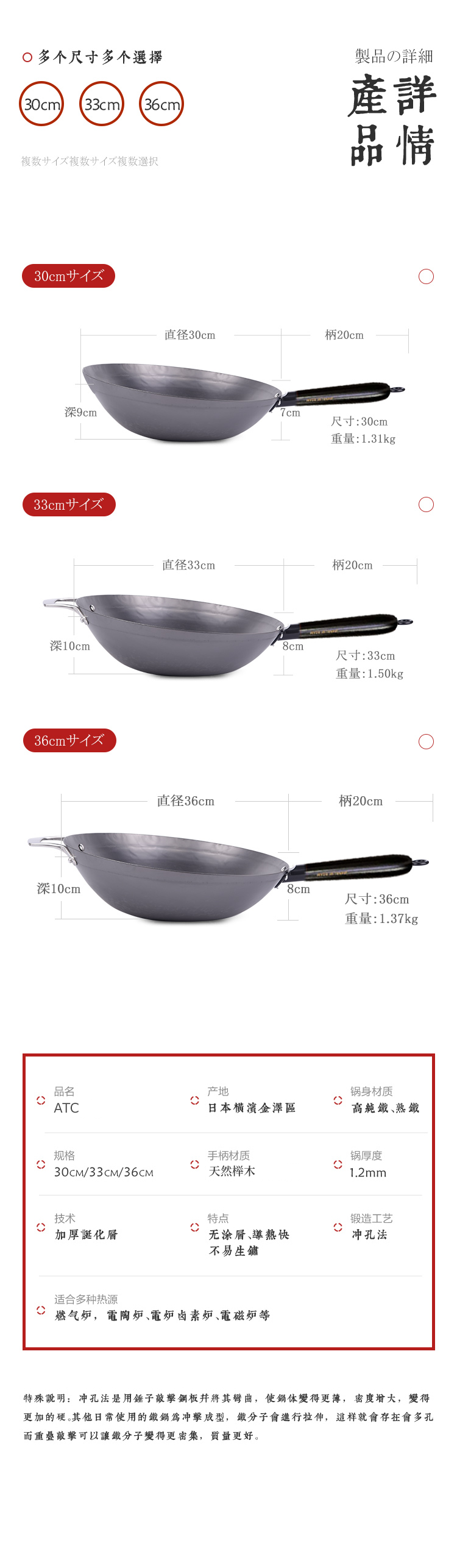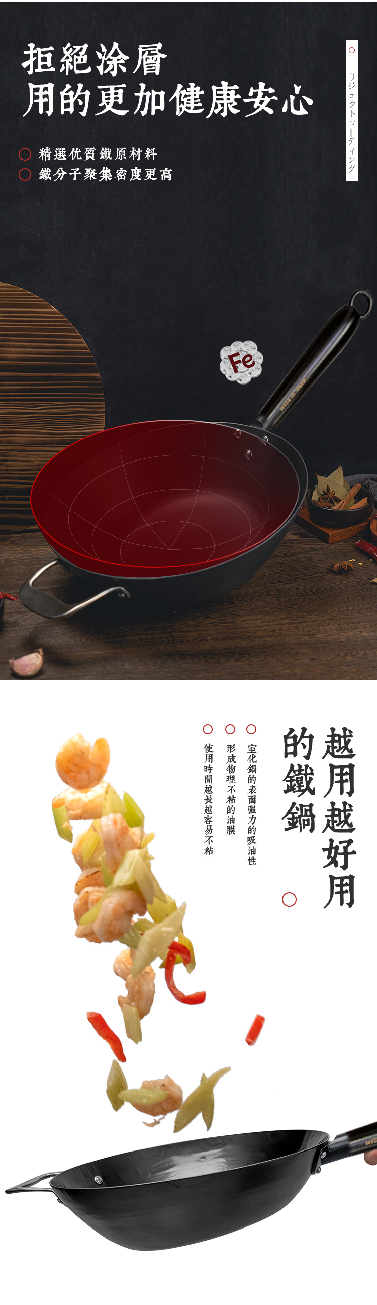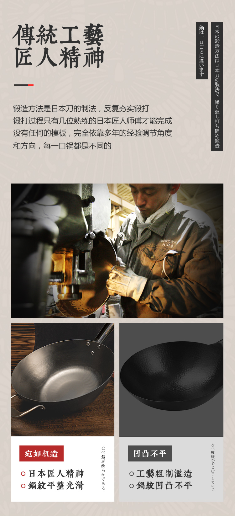日本原装进口手工铁制木柄炒锅手打铁锅健康无涂层-YHD