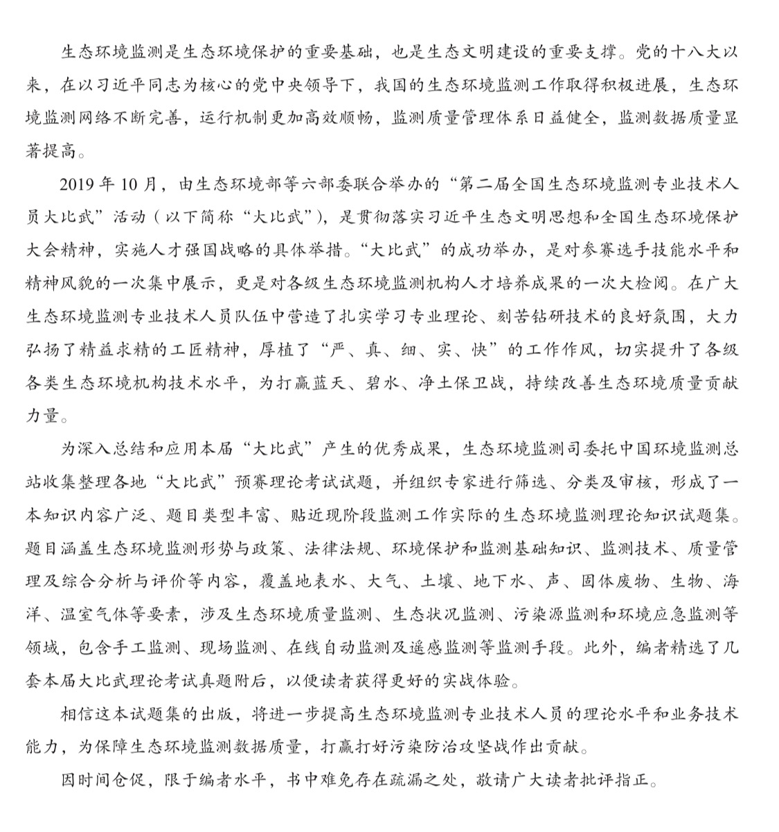 书名:第二届全国生态环境监测专业技术人员大比武理论试题集