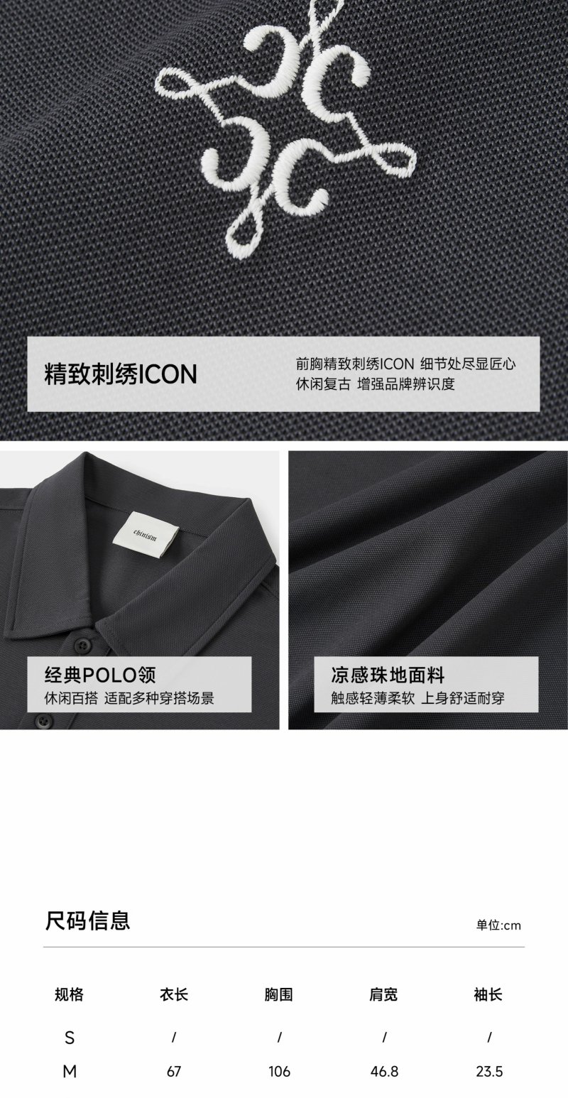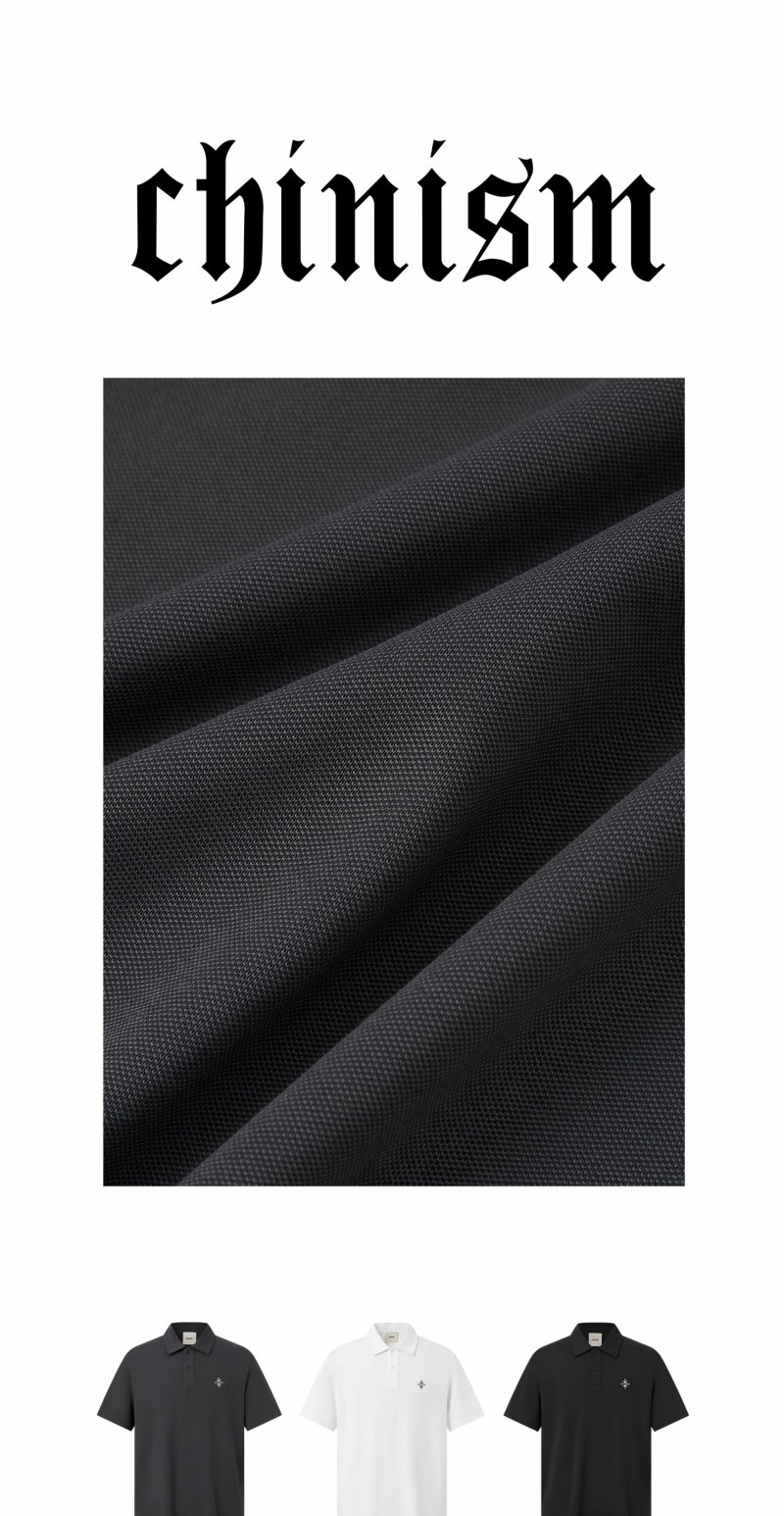 【凉感】CHINISM赤尘 黑色刺绣polo衫男2025夏季休闲短袖翻领上衣