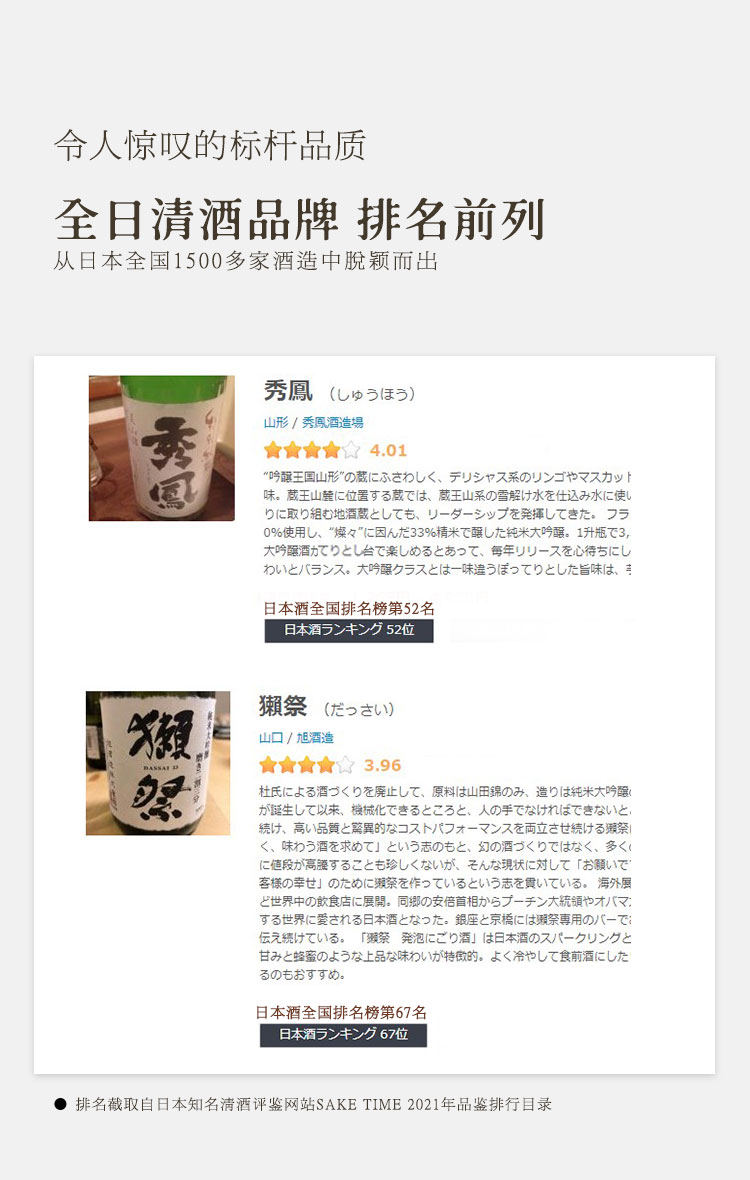 【全球限量 低产量】秀凤系列纯米大吟酿 日本原瓶进口