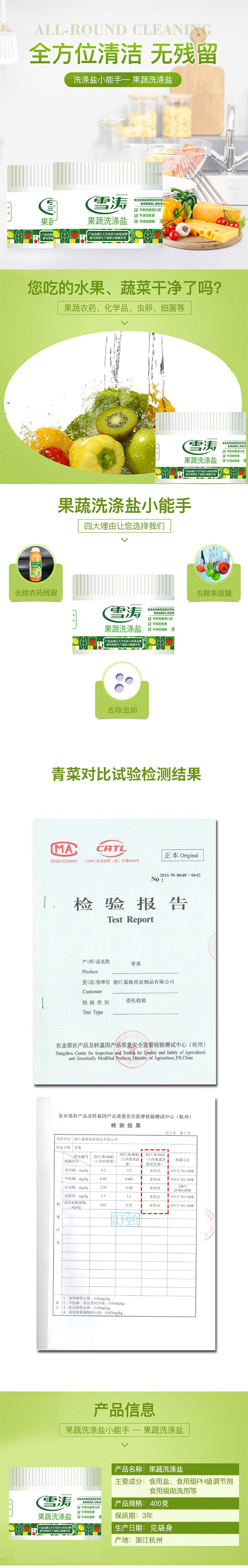 雪涛果蔬洗涤盐 500g/罐