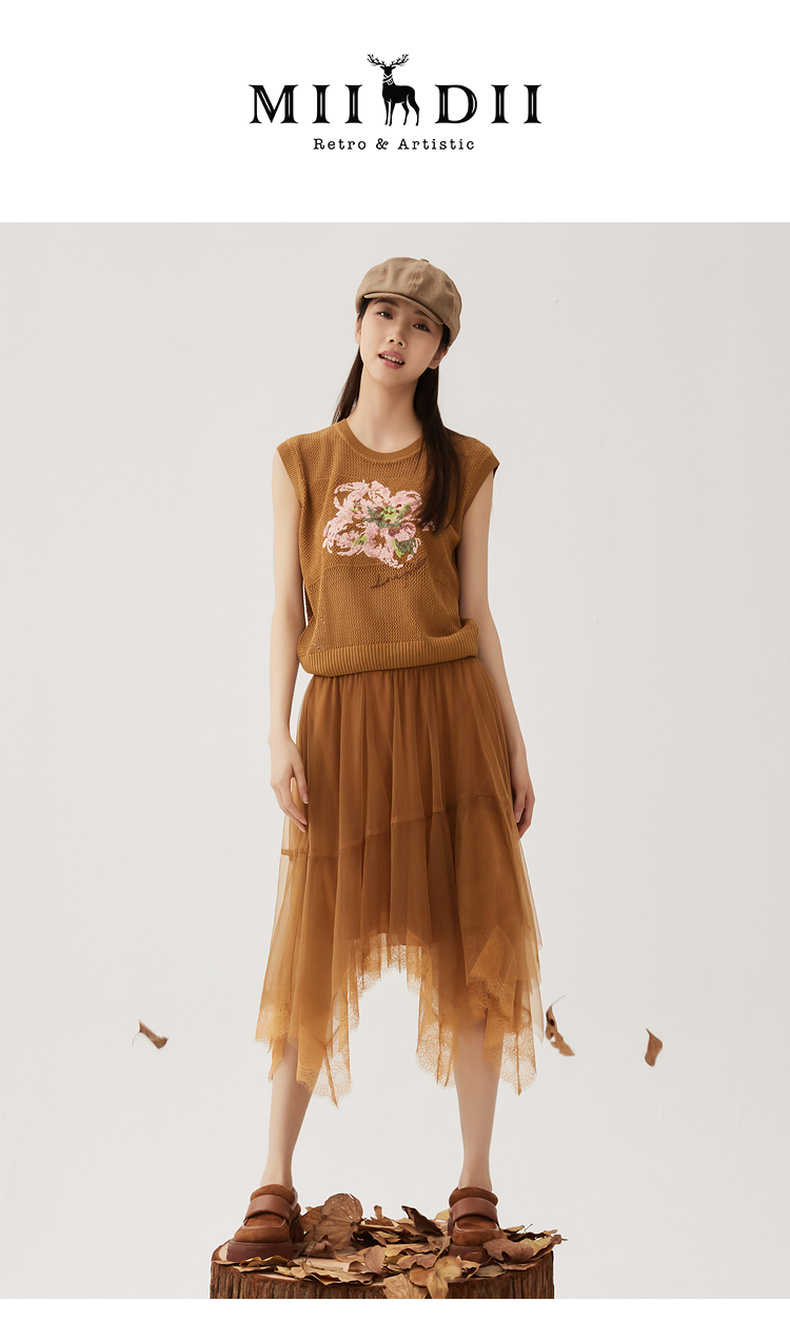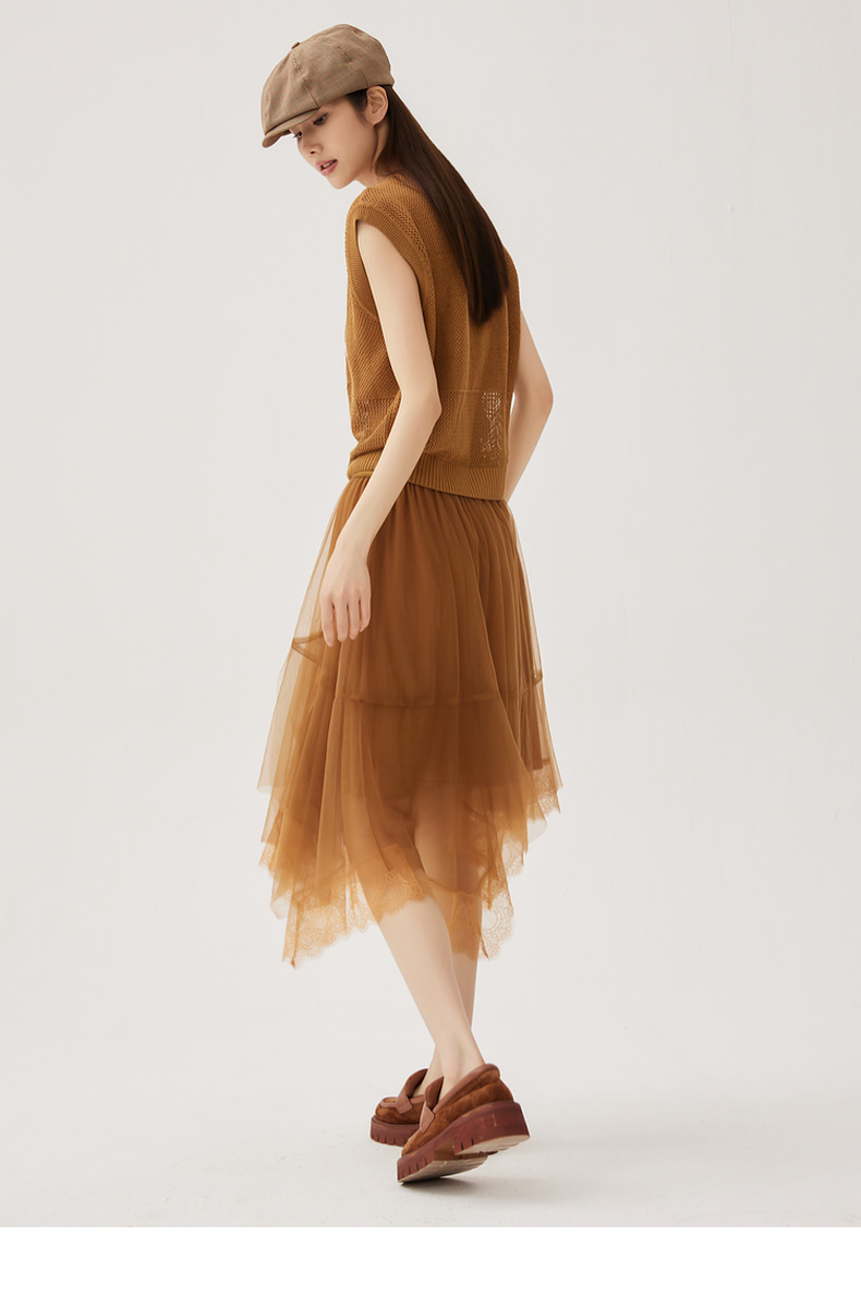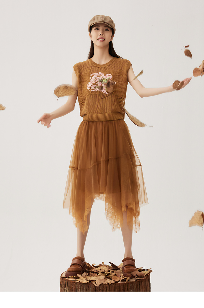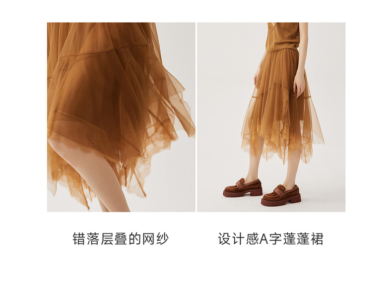 谜底网纱半身裙2024秋季新品优雅浪漫不规则下摆中长裙243MB1116