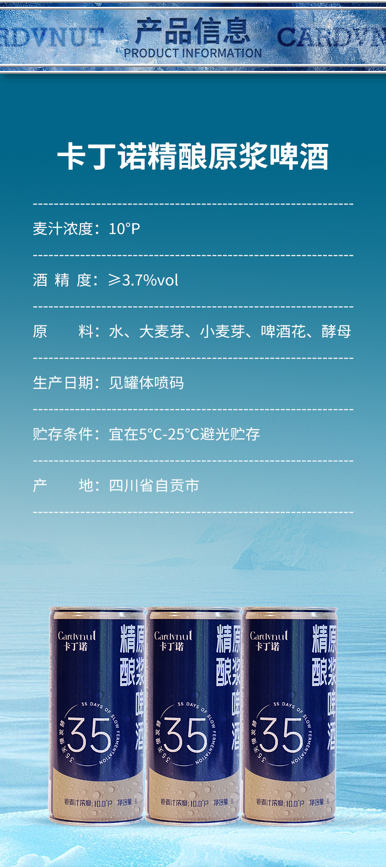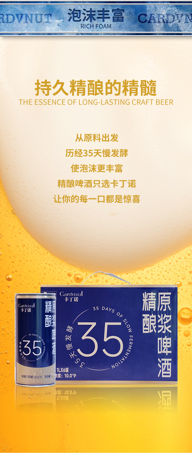 卡丁诺 精酿原浆啤酒 10度 整箱1L*6瓶