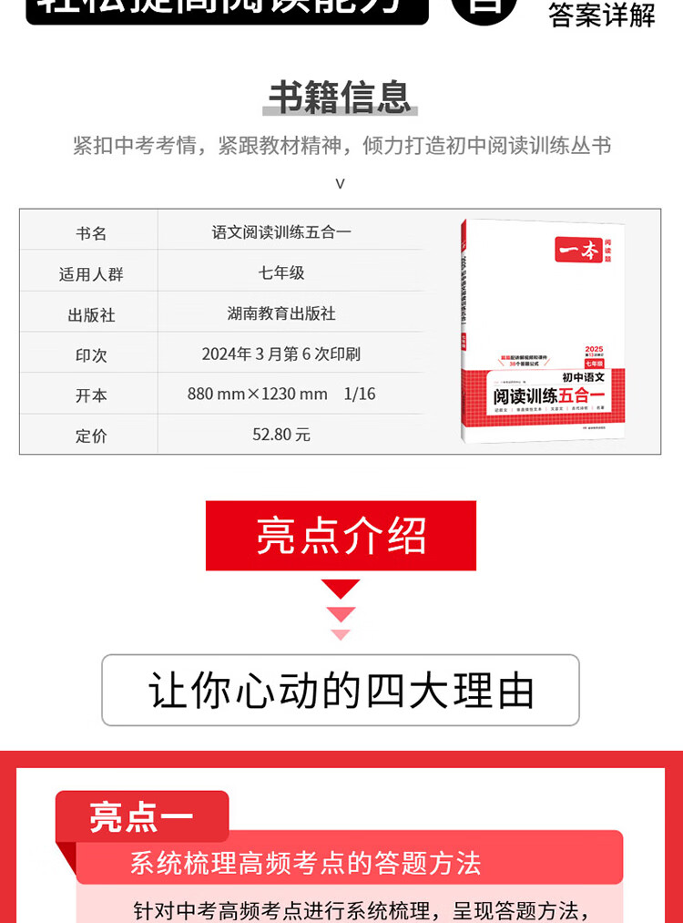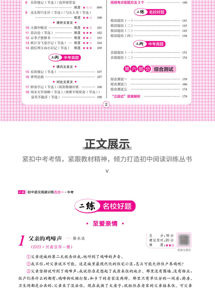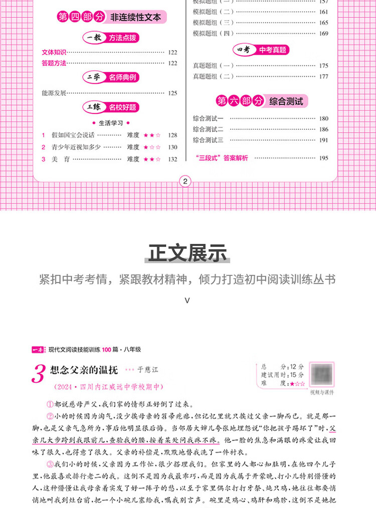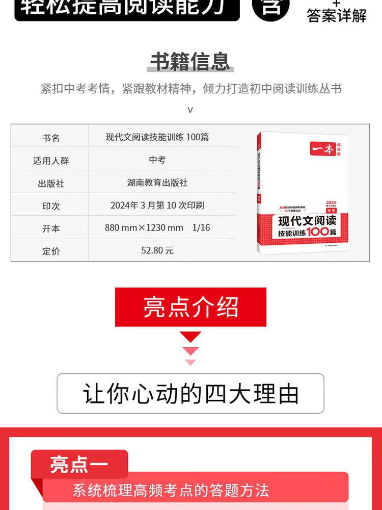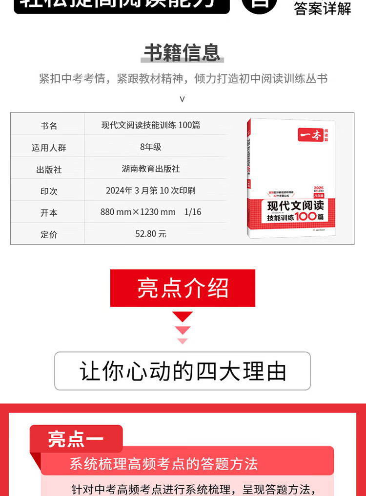 2026一本现代文阅读技能训练五合一阅读真题100篇 初中语文同步拓展阅读译注赏析练习册
