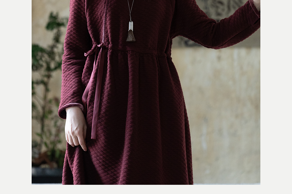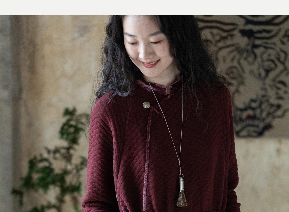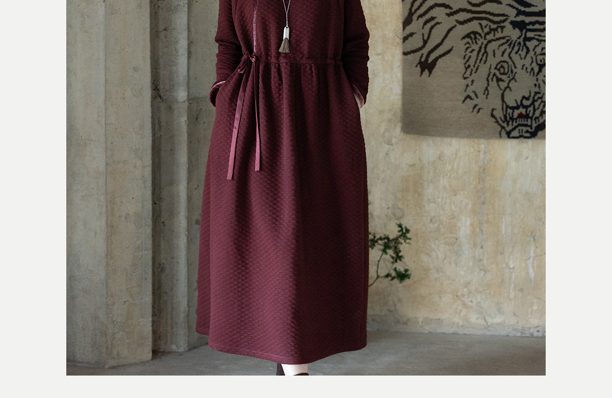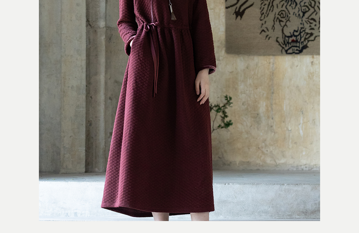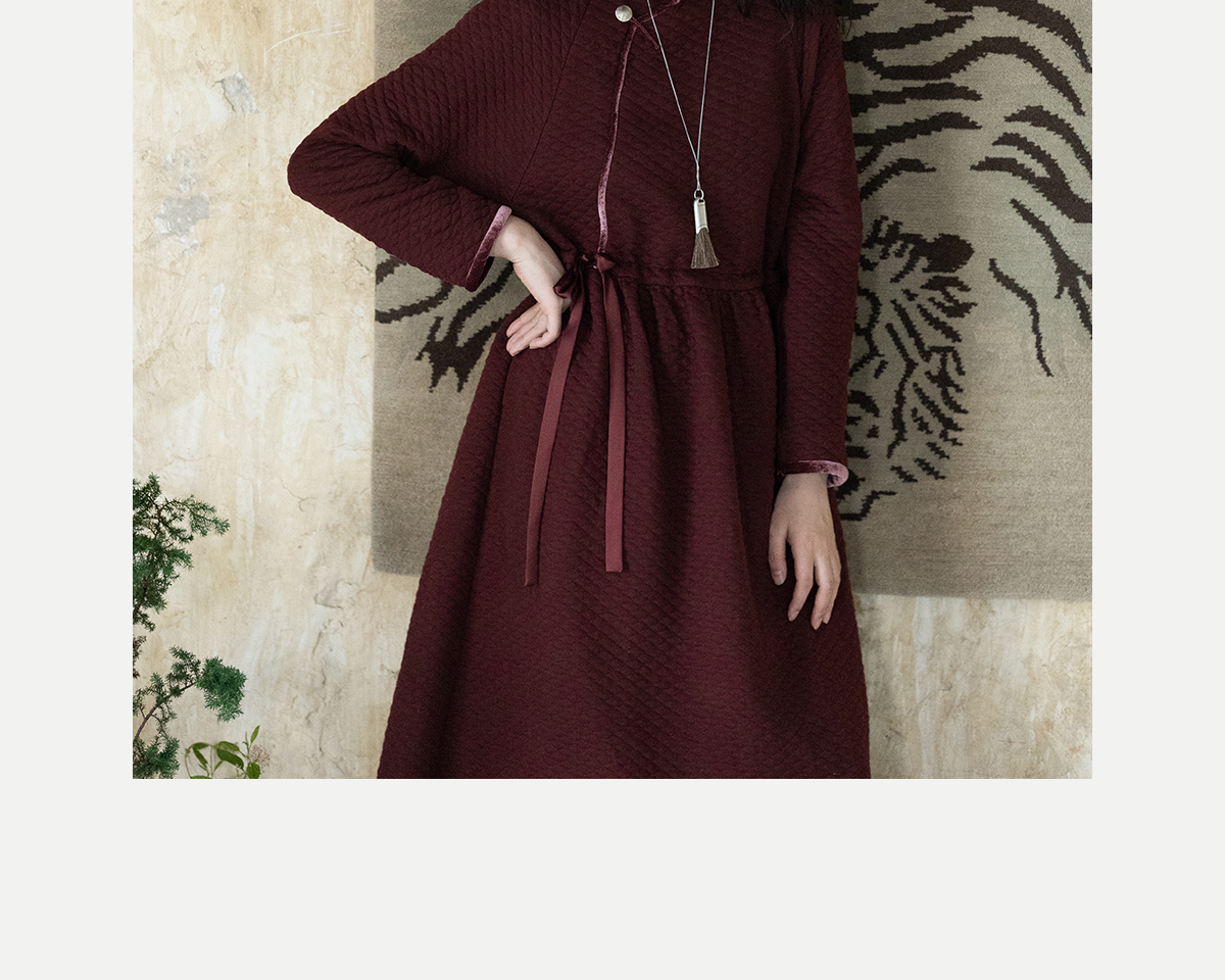 牧衣游原创 棉混纺肌理感连衣裙女新款红色民族风宽松长裙 汀鹭