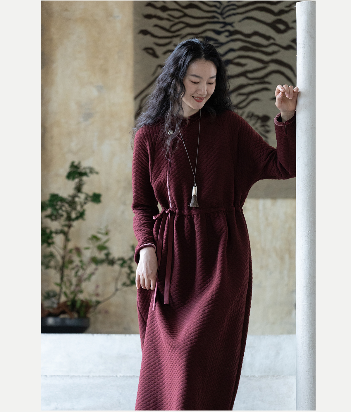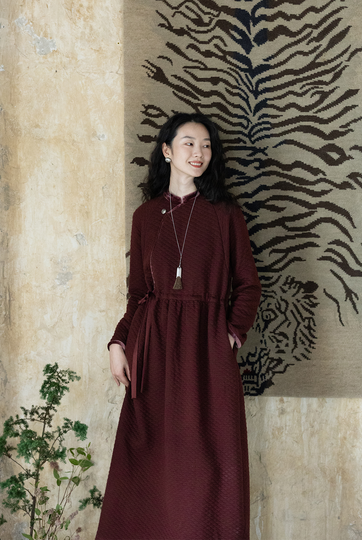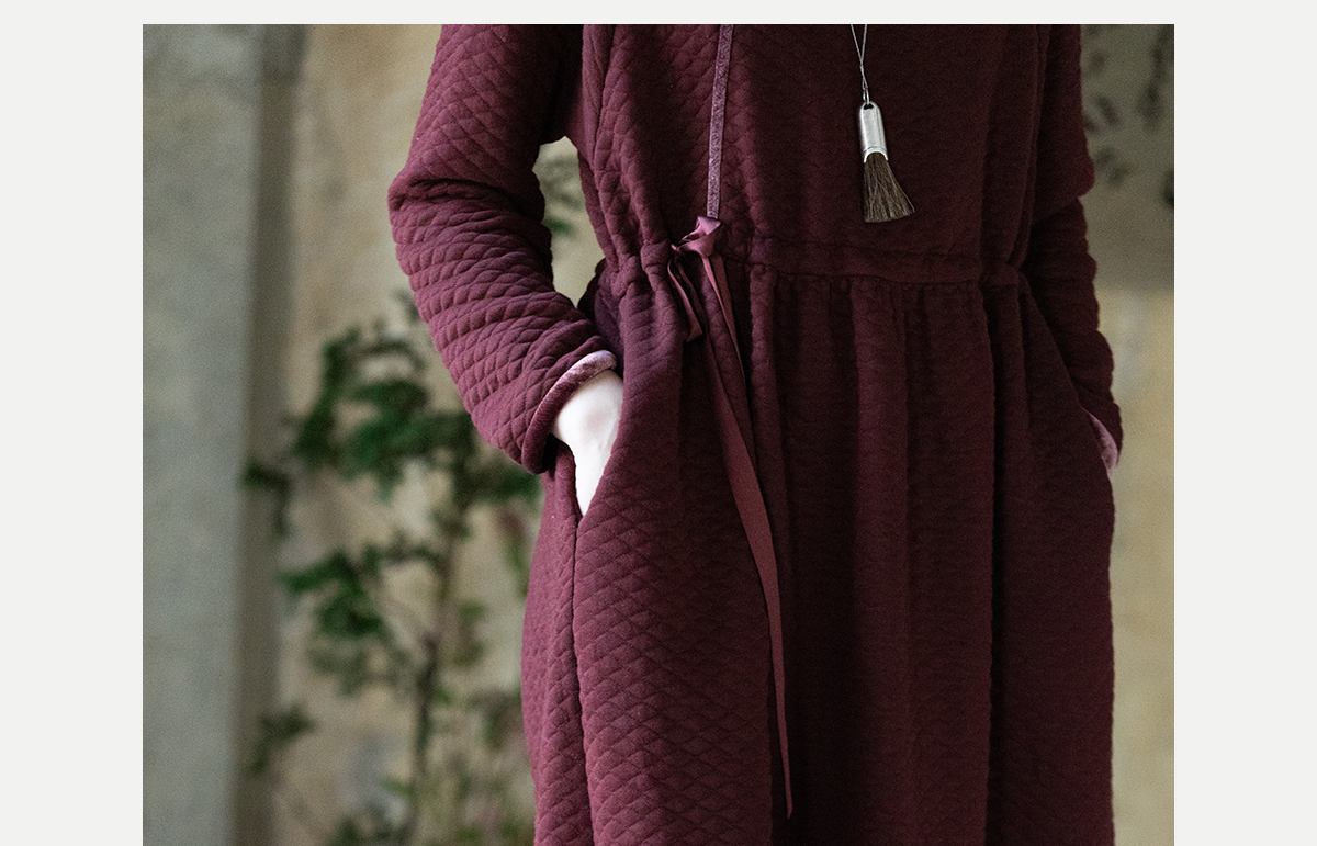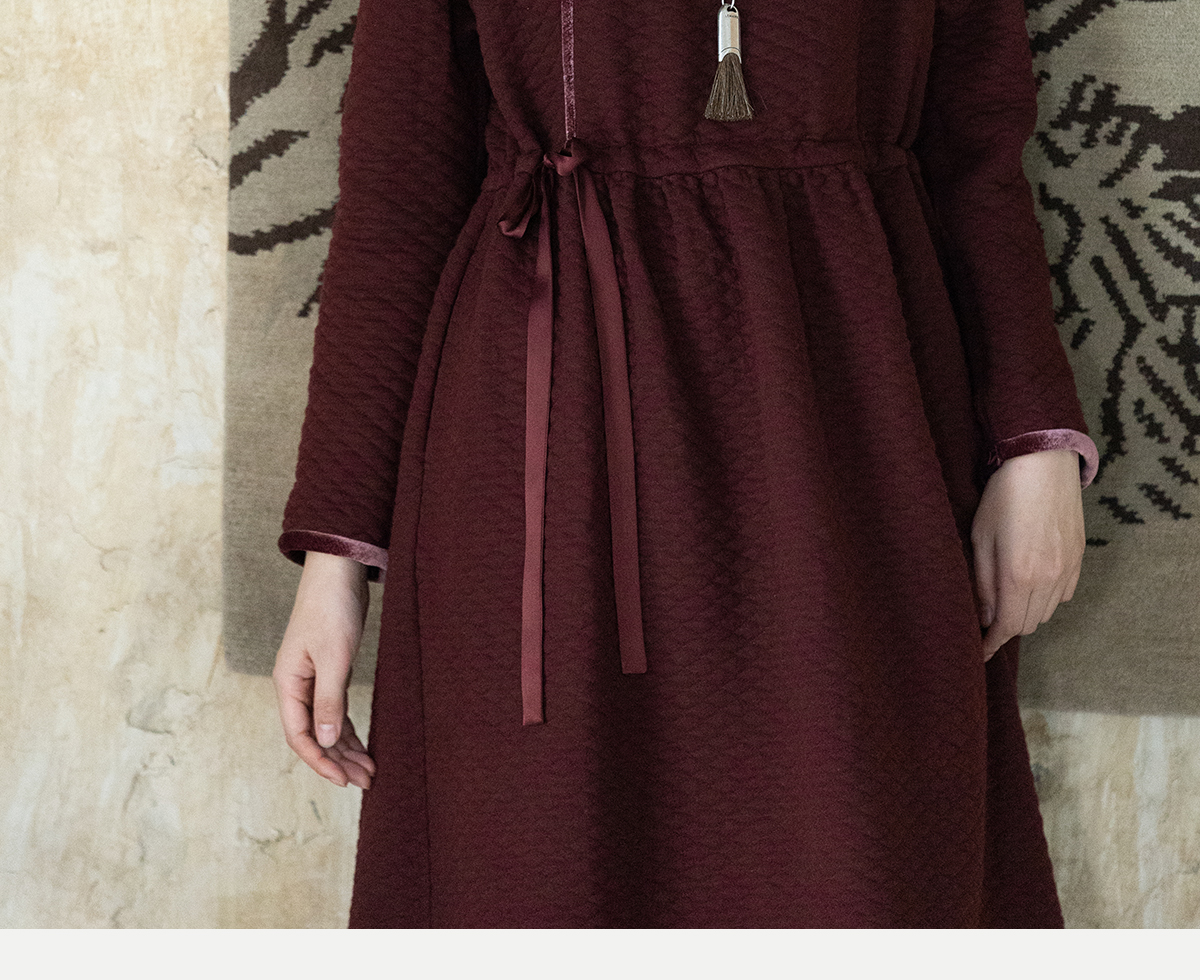 牧衣游原创 棉混纺肌理感连衣裙女新款红色民族风宽松长裙 汀鹭
