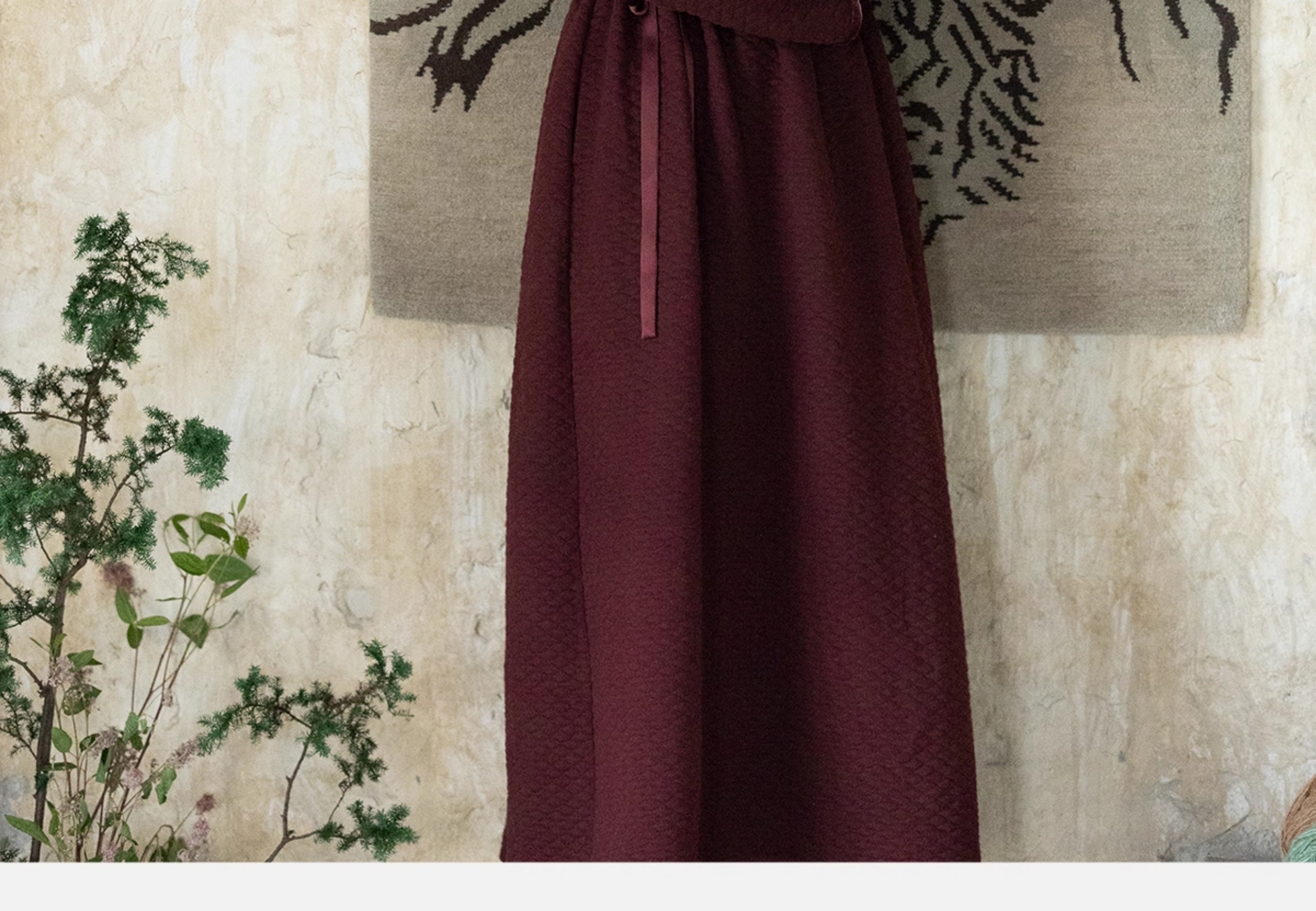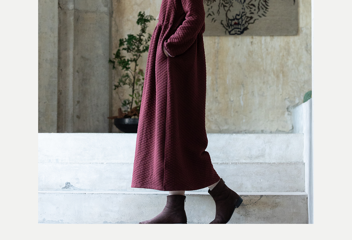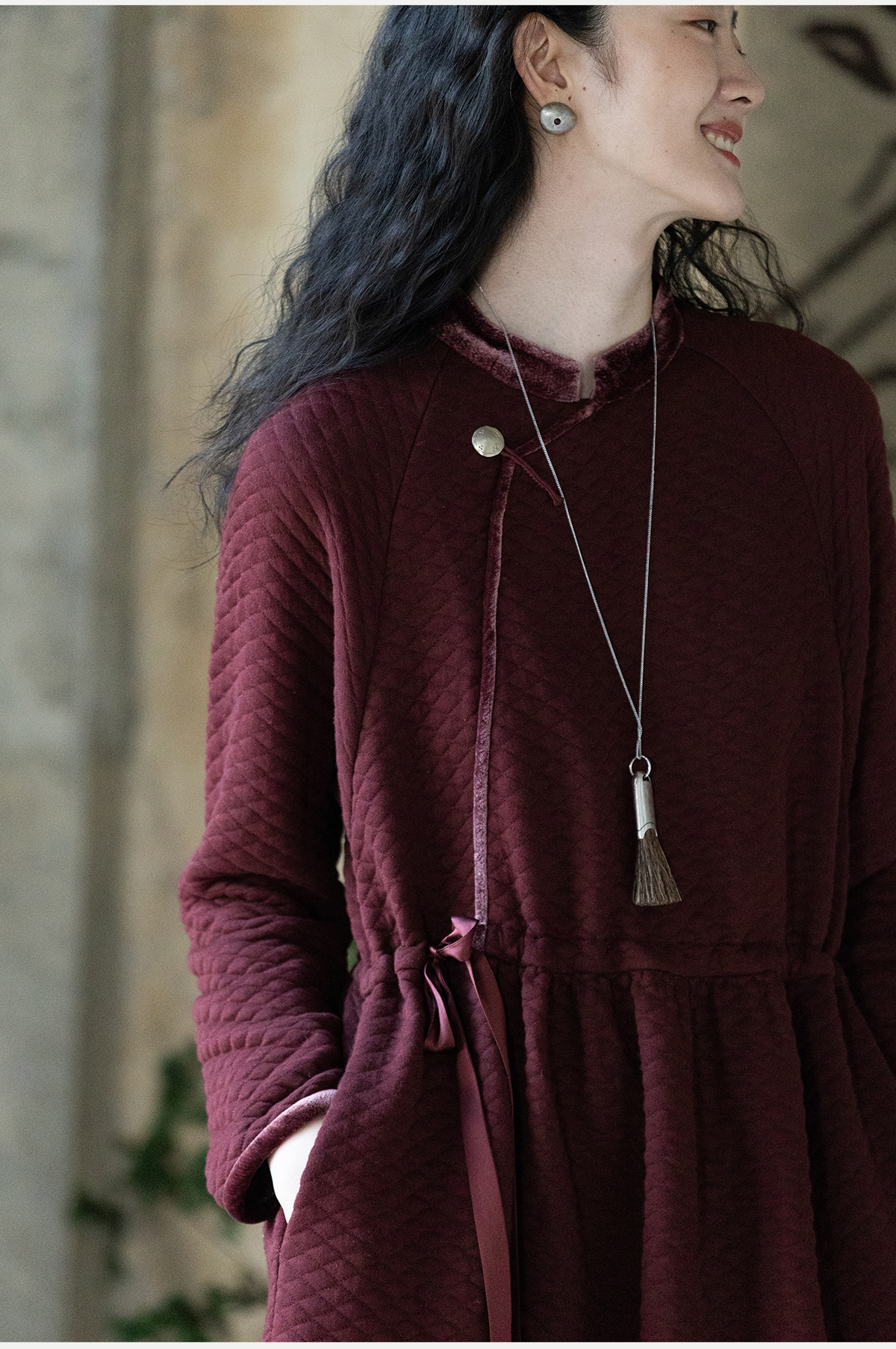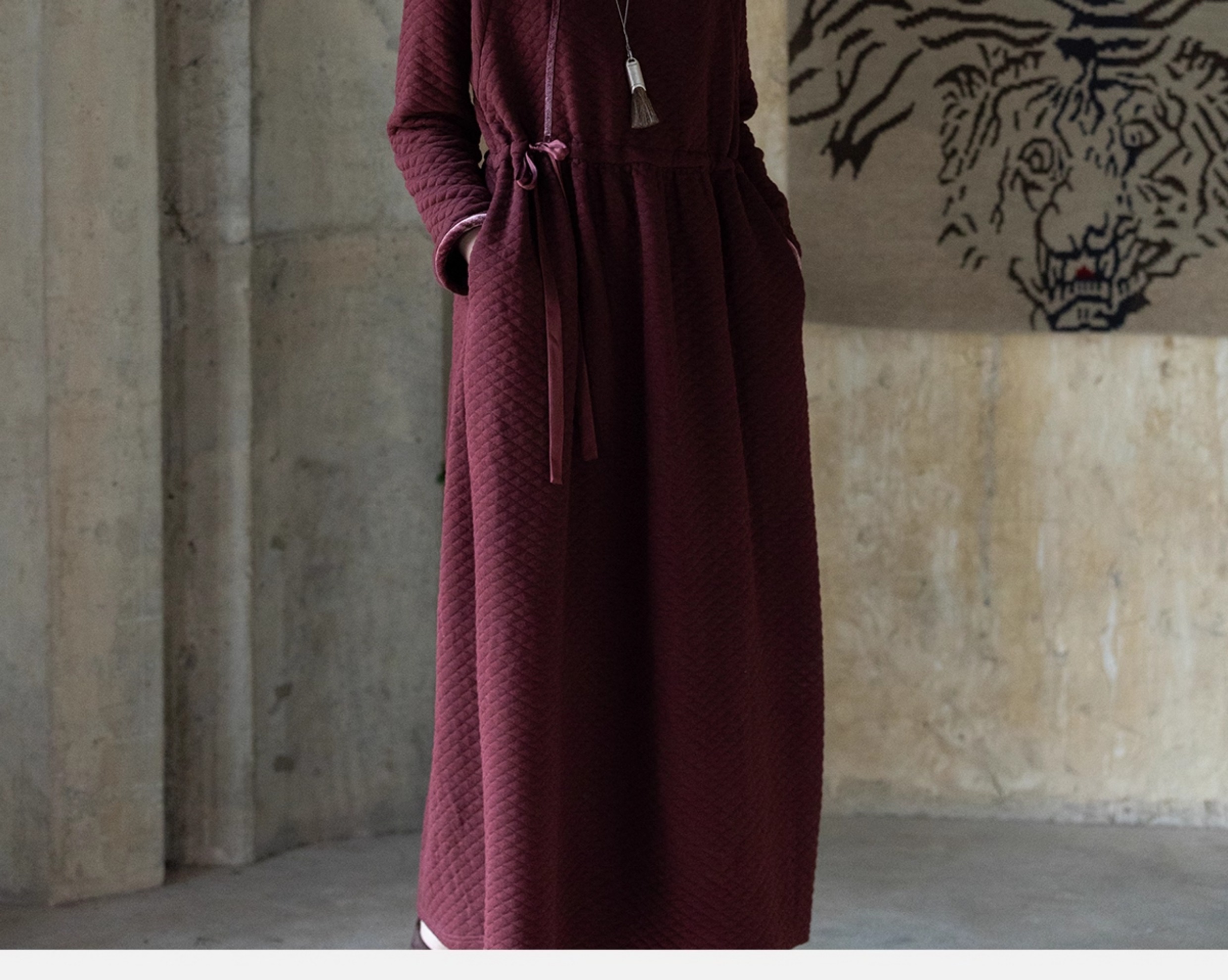 牧衣游原创 棉混纺肌理感连衣裙女新款红色民族风宽松长裙 汀鹭
