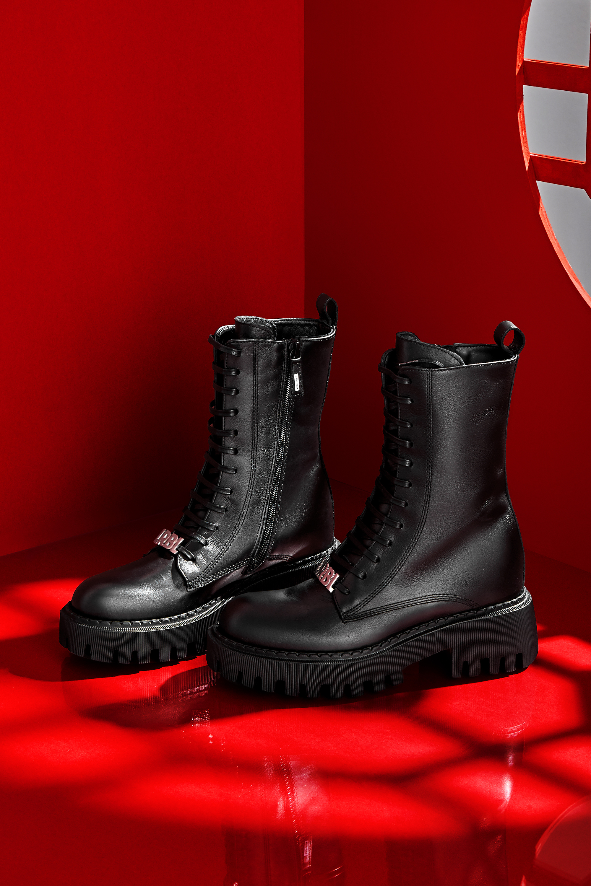 豪麟名鞋奥莱LORIBLU女鞋马丁靴羊皮革LR07600N黑色 原价5660元