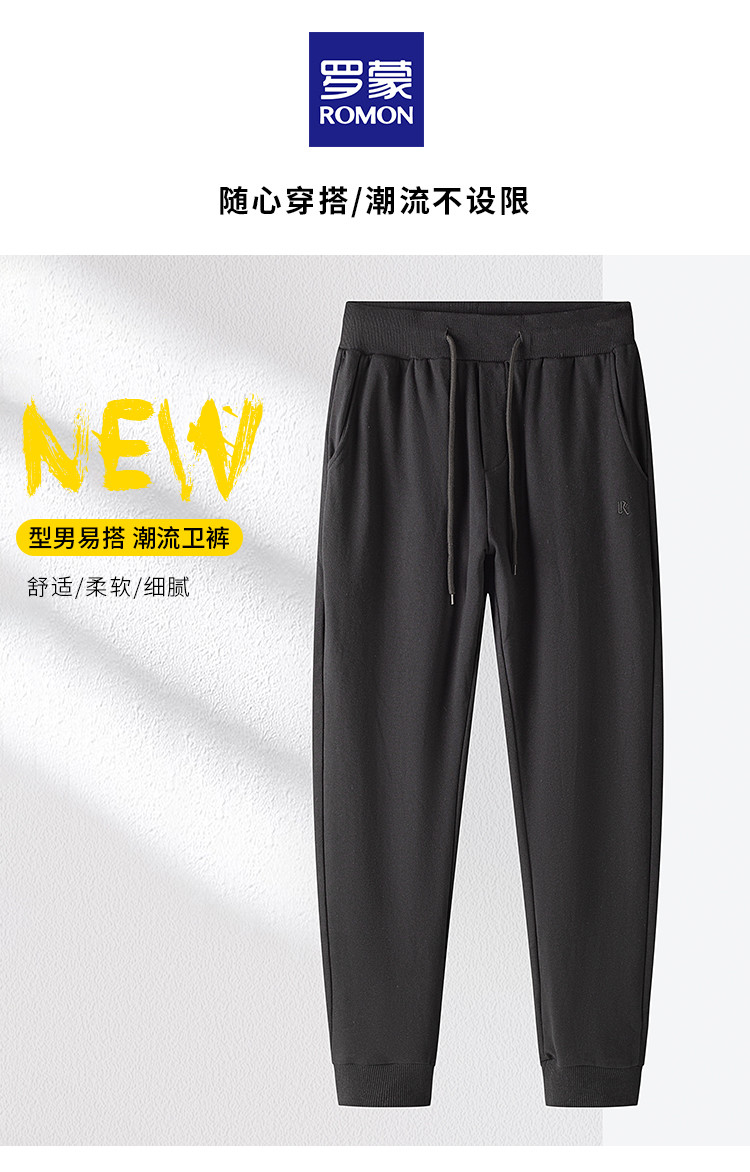 【100%棉】罗蒙春秋男装休闲卫裤男舒适运动裤男裤百搭休闲裤男束脚裤子男