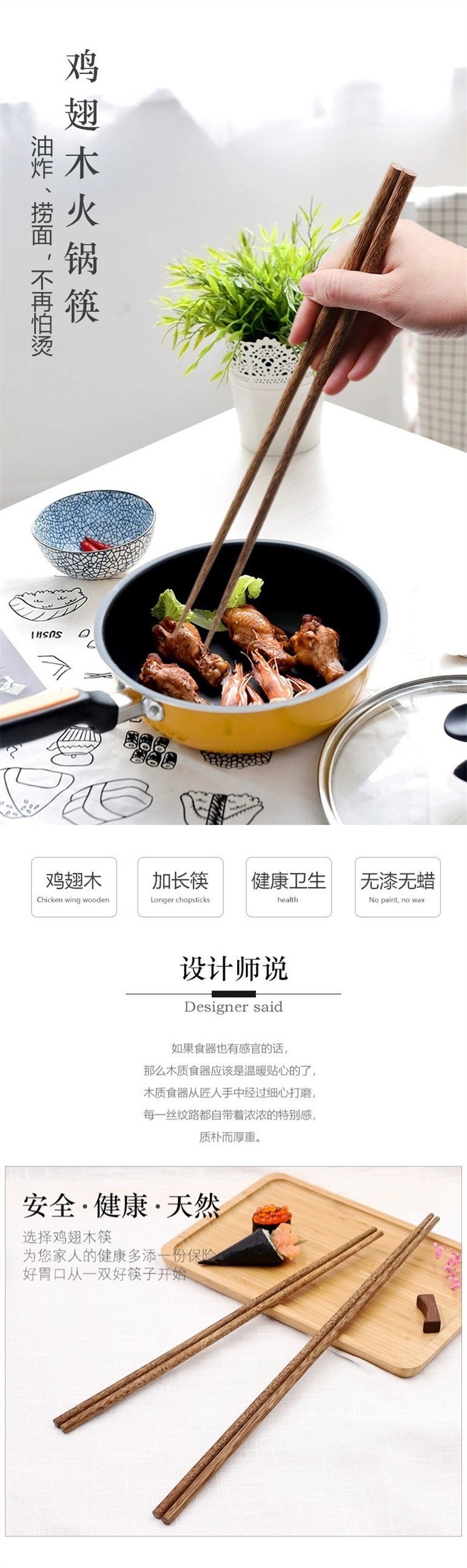 长筷子 鸡翅木火锅筷加长筷 42cm特长捞面筷子 1双 油炸耐高温加长筷厨房油锅