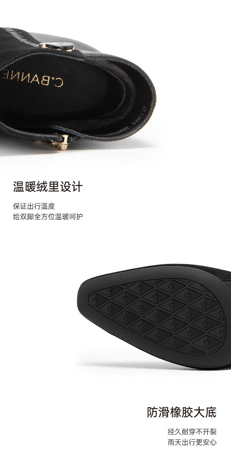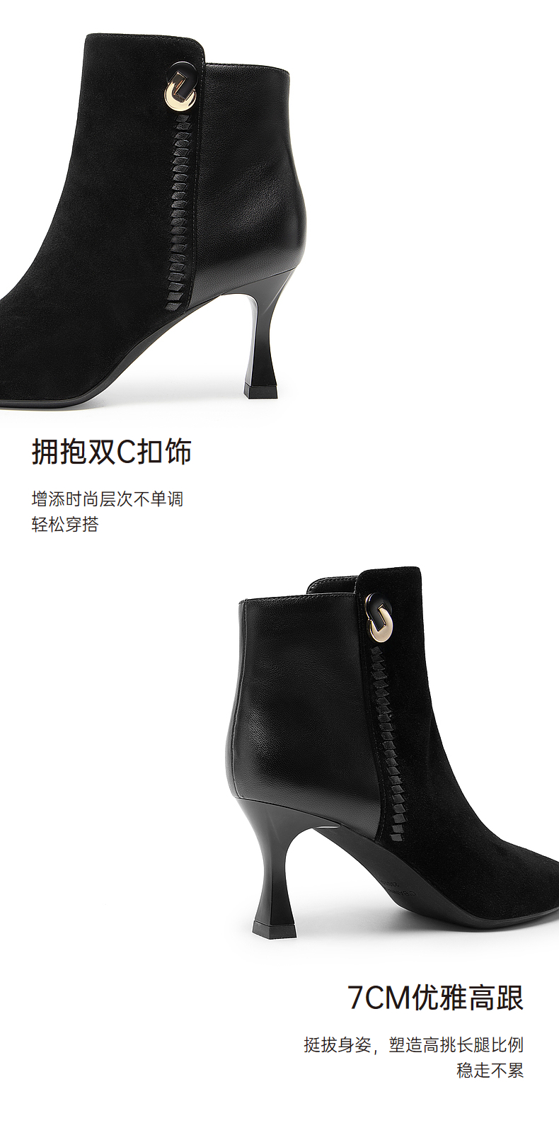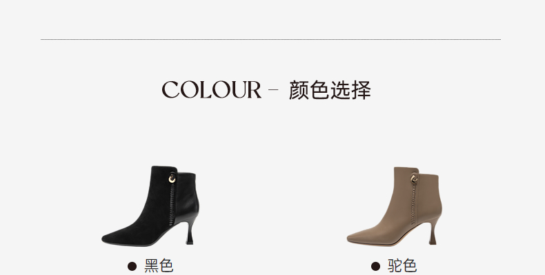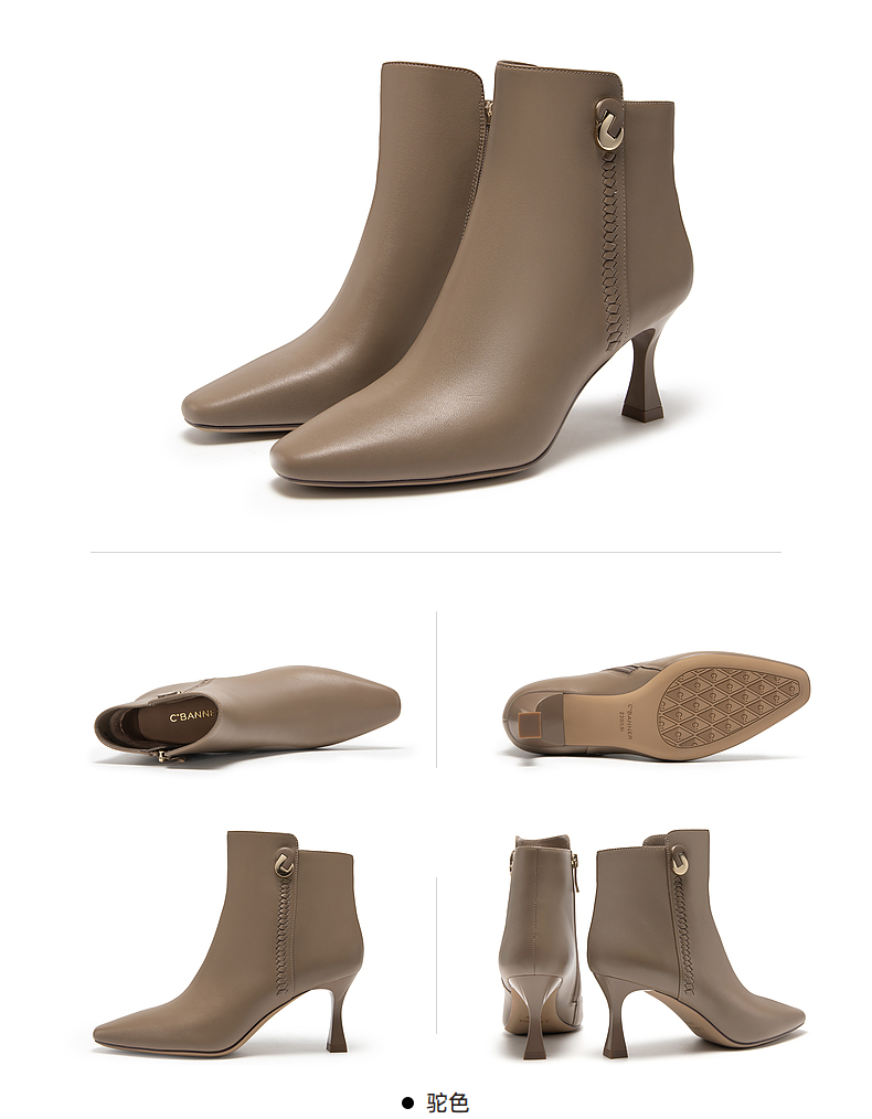 千百度羊皮时装靴秋冬细高跟短靴子女鞋真皮显瘦气质保暖A23577227