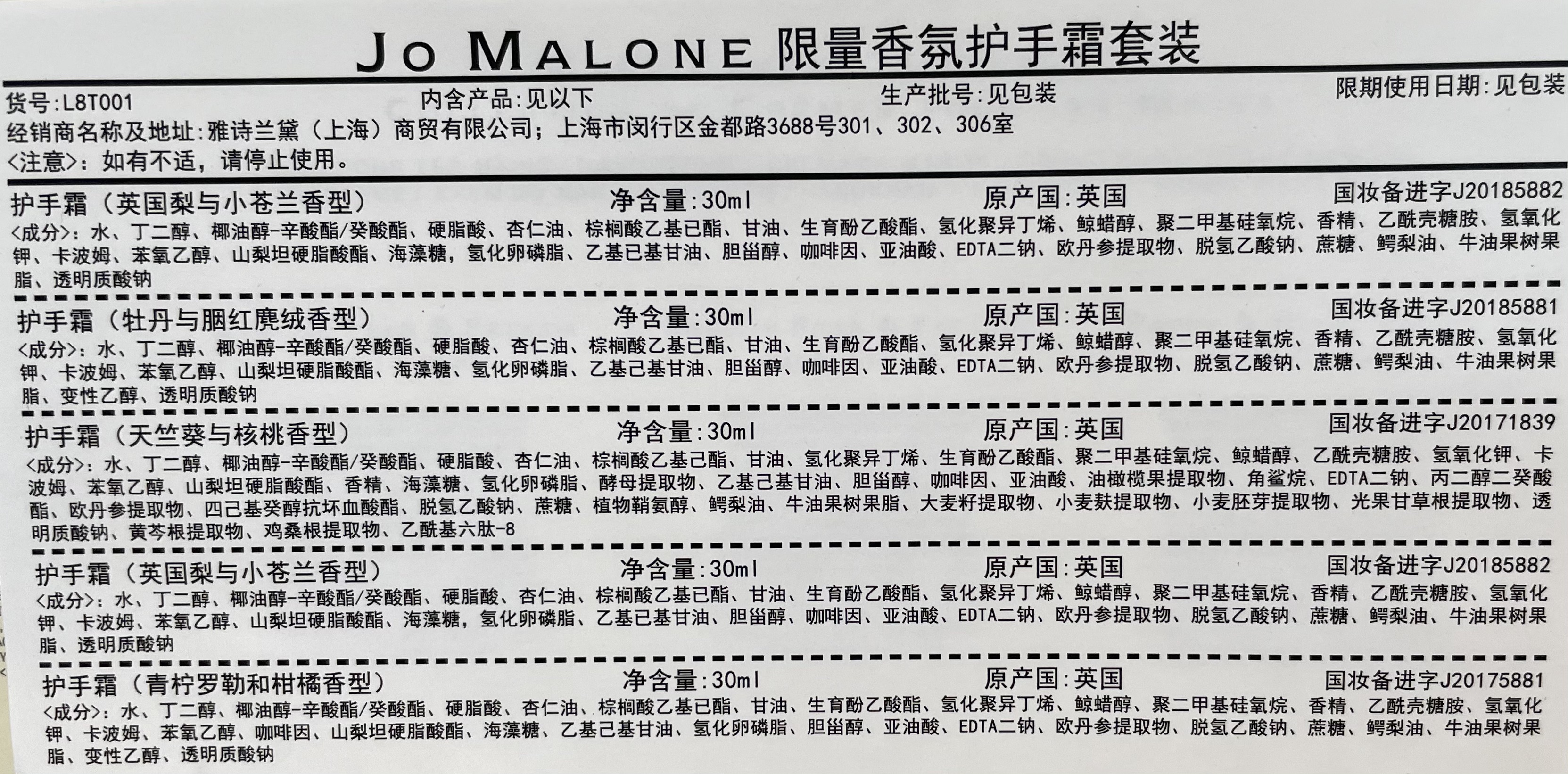 祖玛珑JoMALONE限量护手霜套装 30ml*5