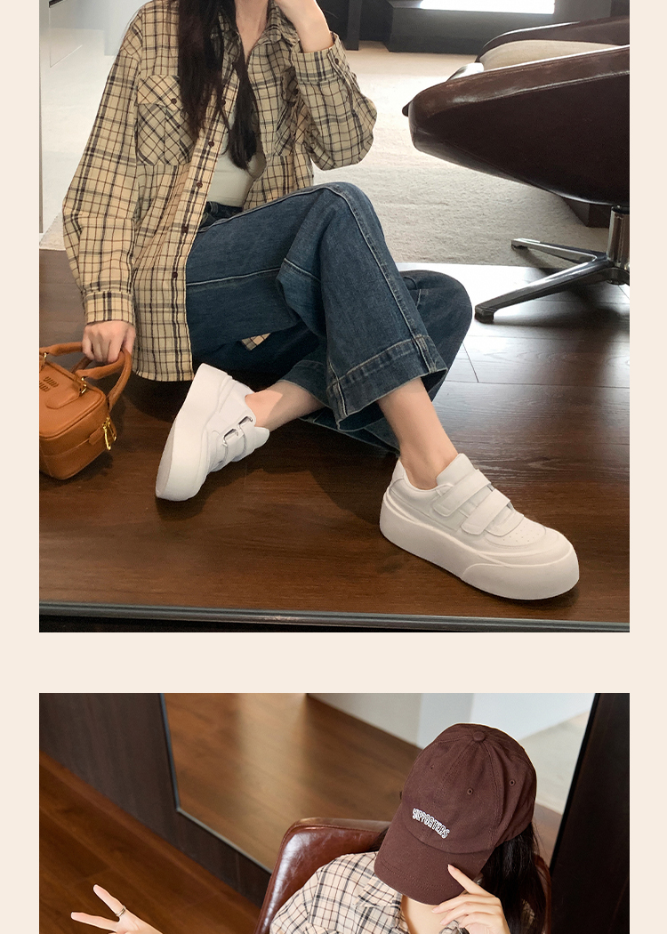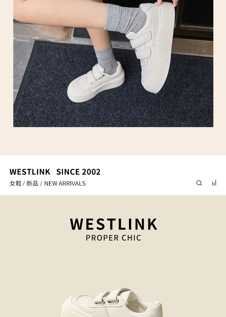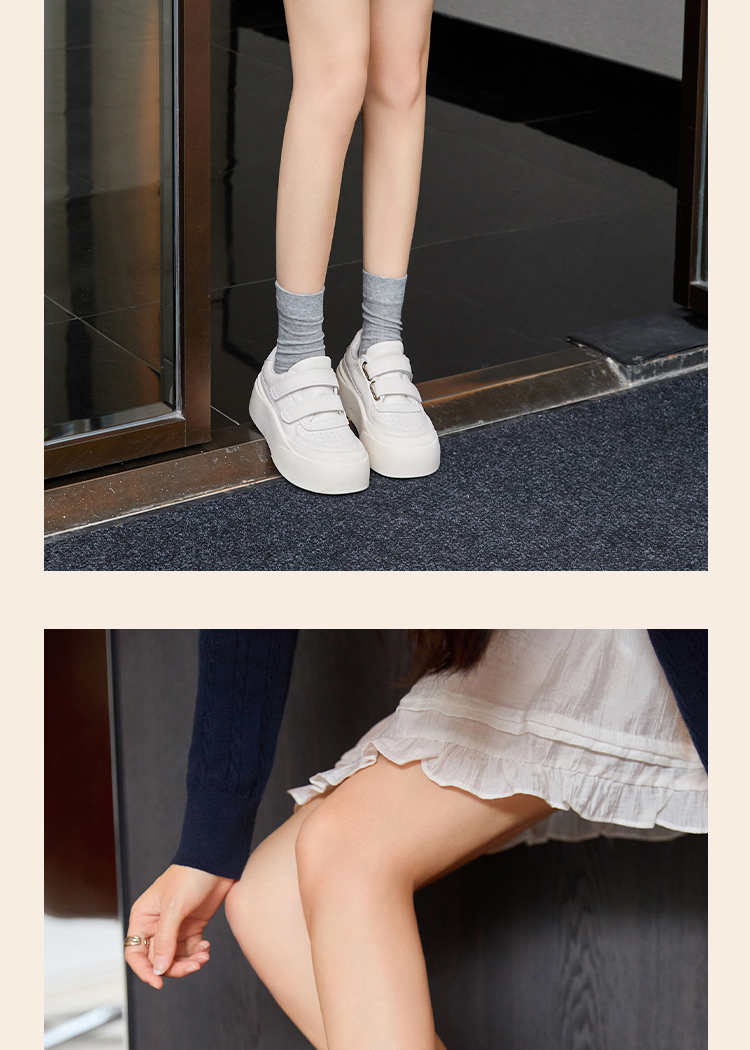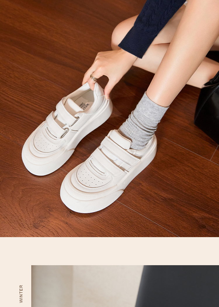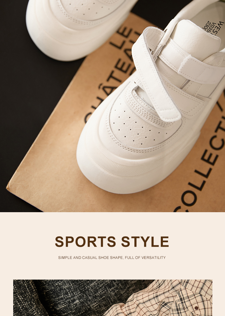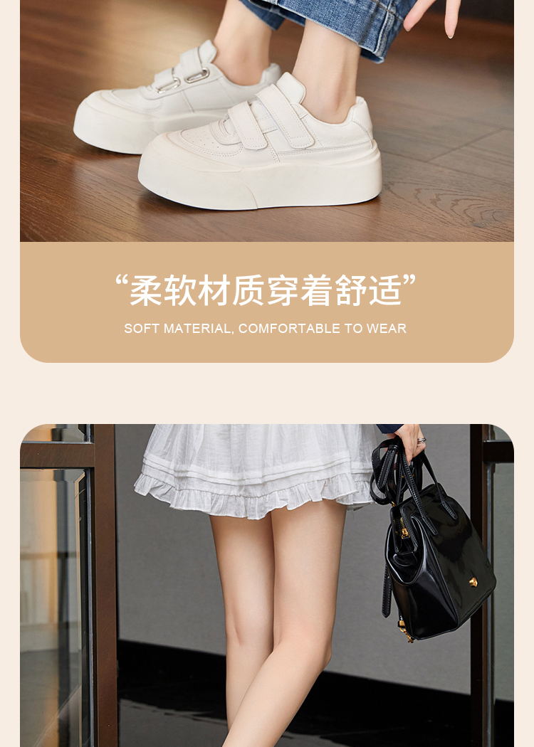 西遇厚底小白鞋女新款魔术贴百搭大头面包鞋白色增高板鞋V0356365
