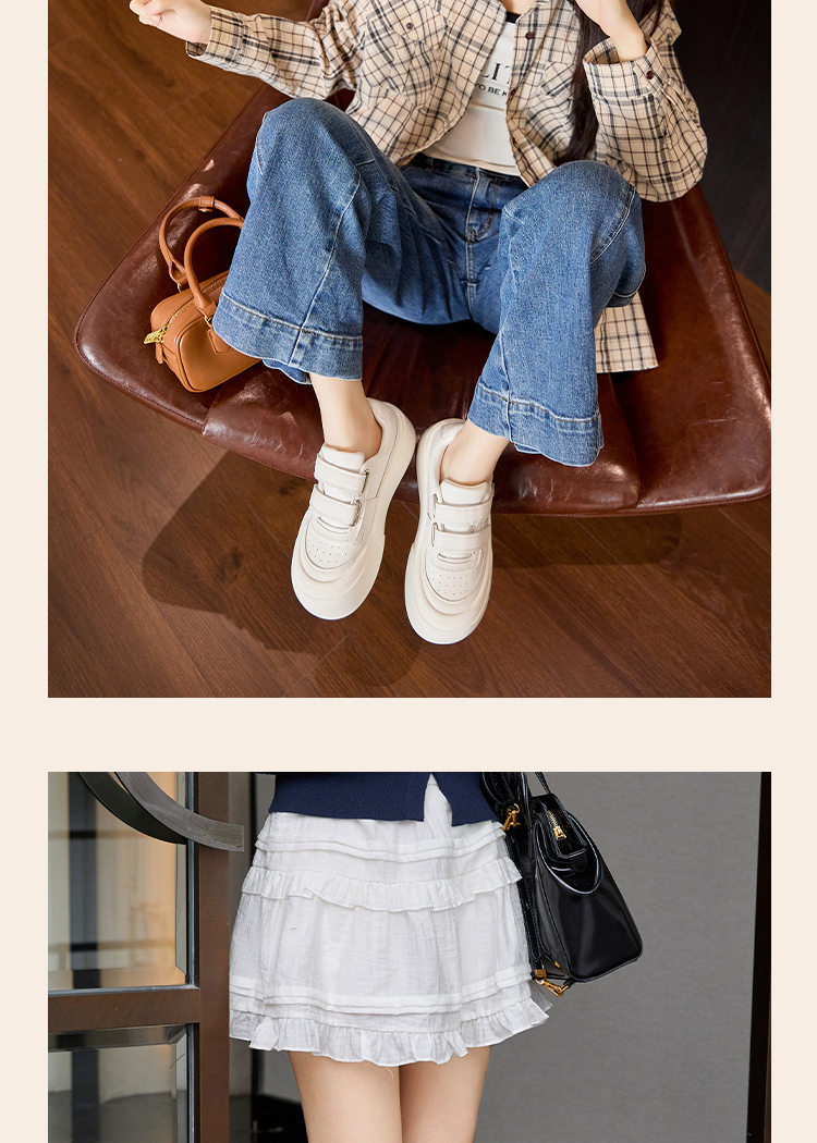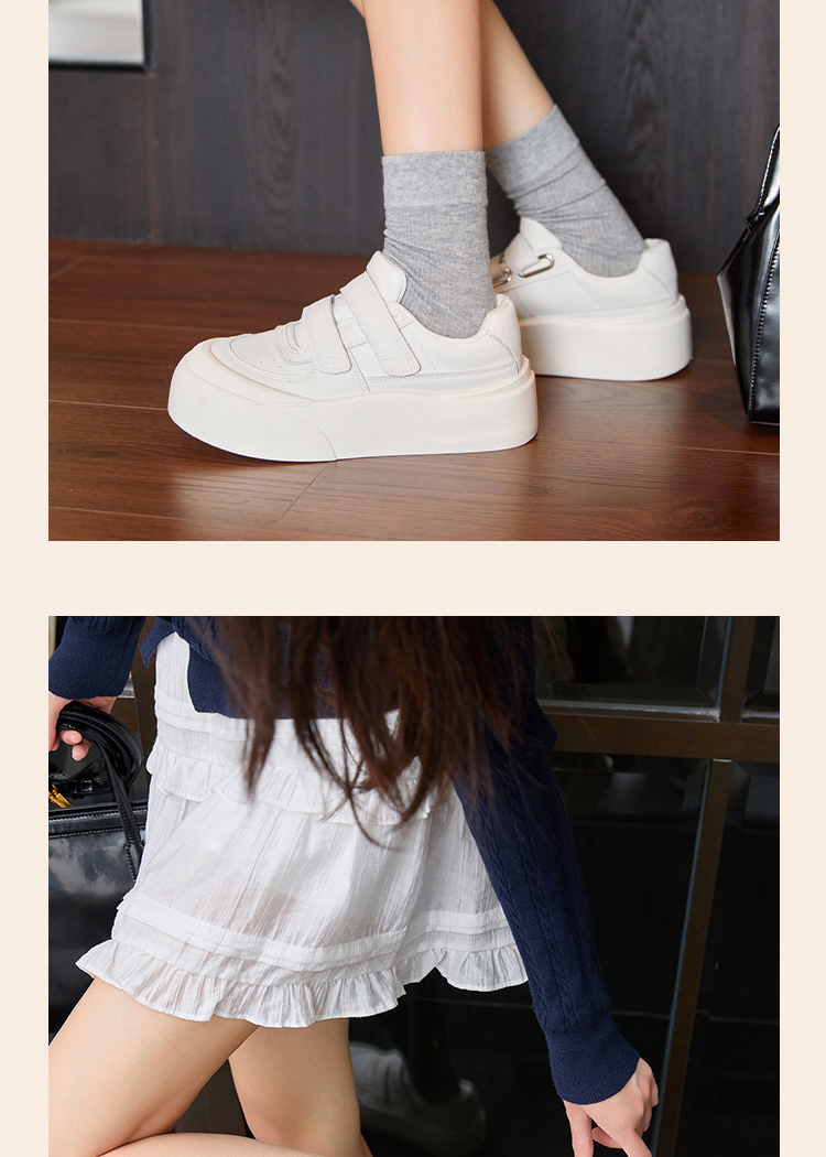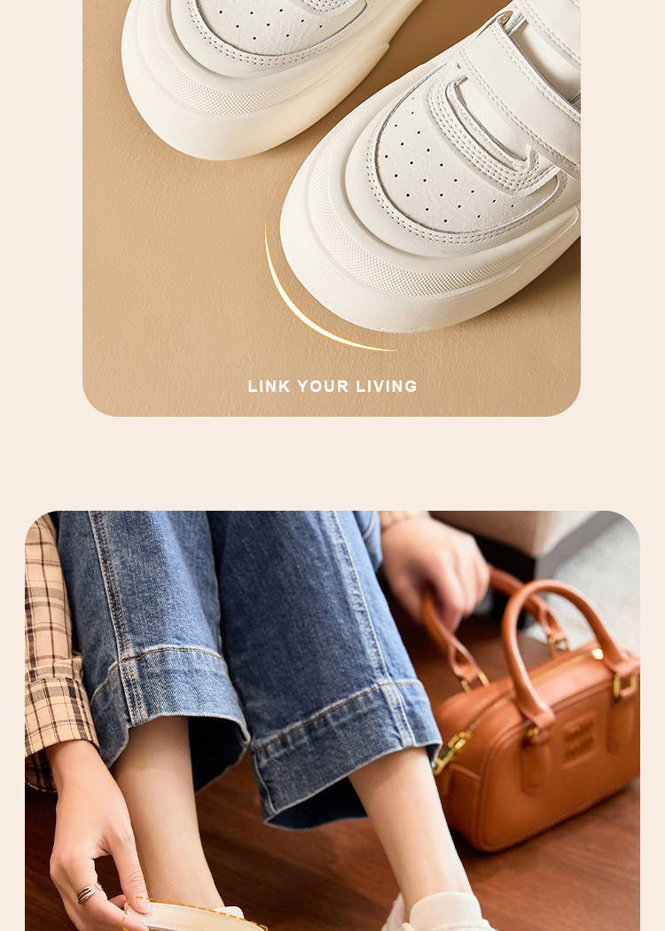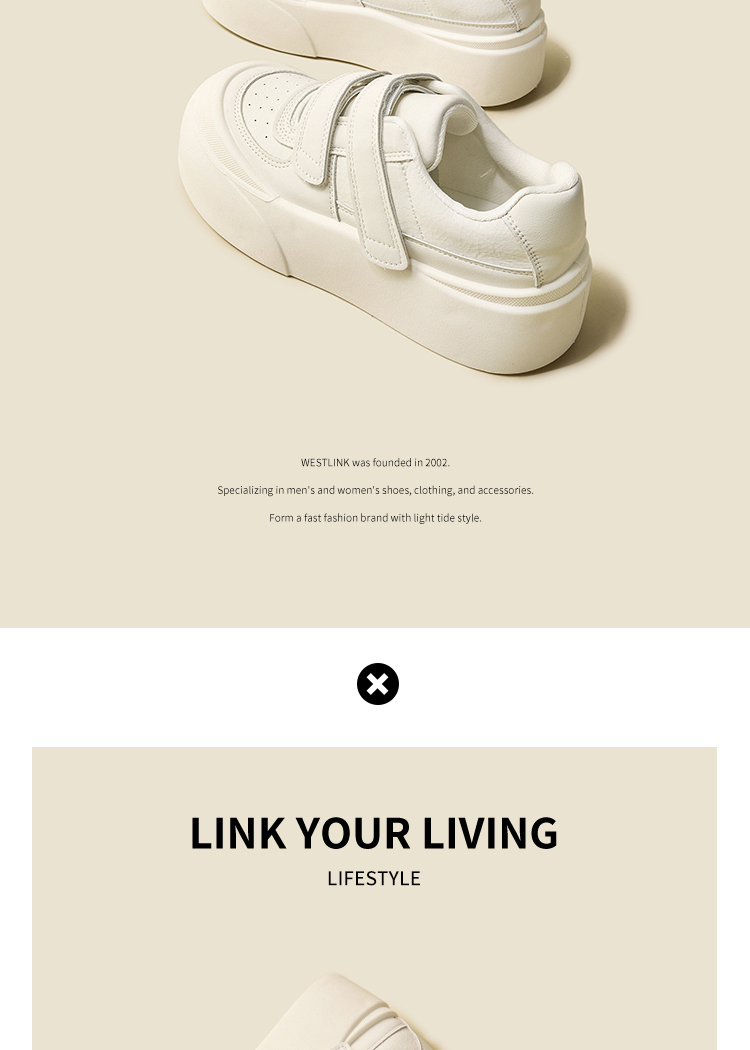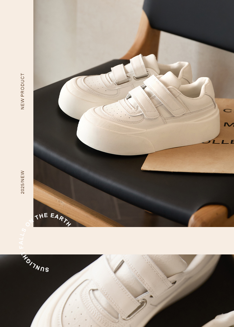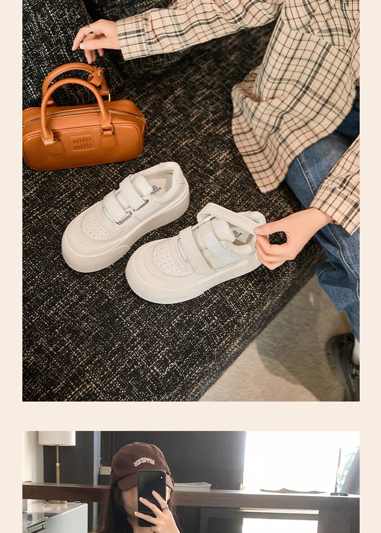 西遇厚底小白鞋女新款魔术贴百搭大头面包鞋白色增高板鞋V0356365
