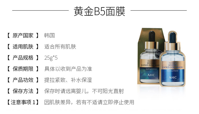 AHC 24K黄金玻尿酸面膜 5片/盒
