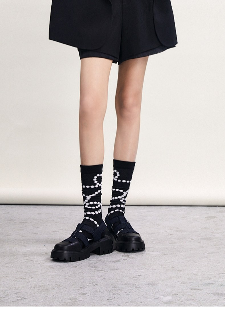 谜底中筒袜女2024春季新款复古文艺风设计感百搭袜子女241MQ0401