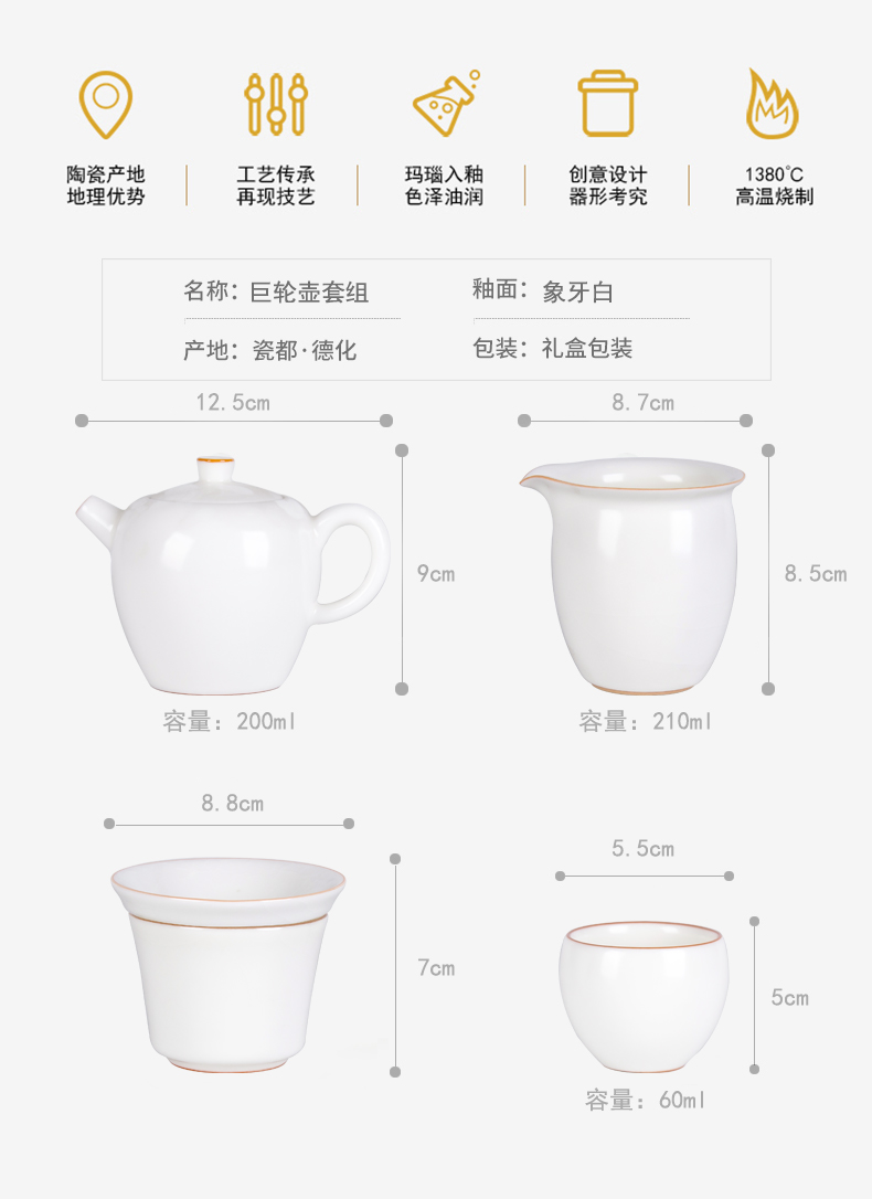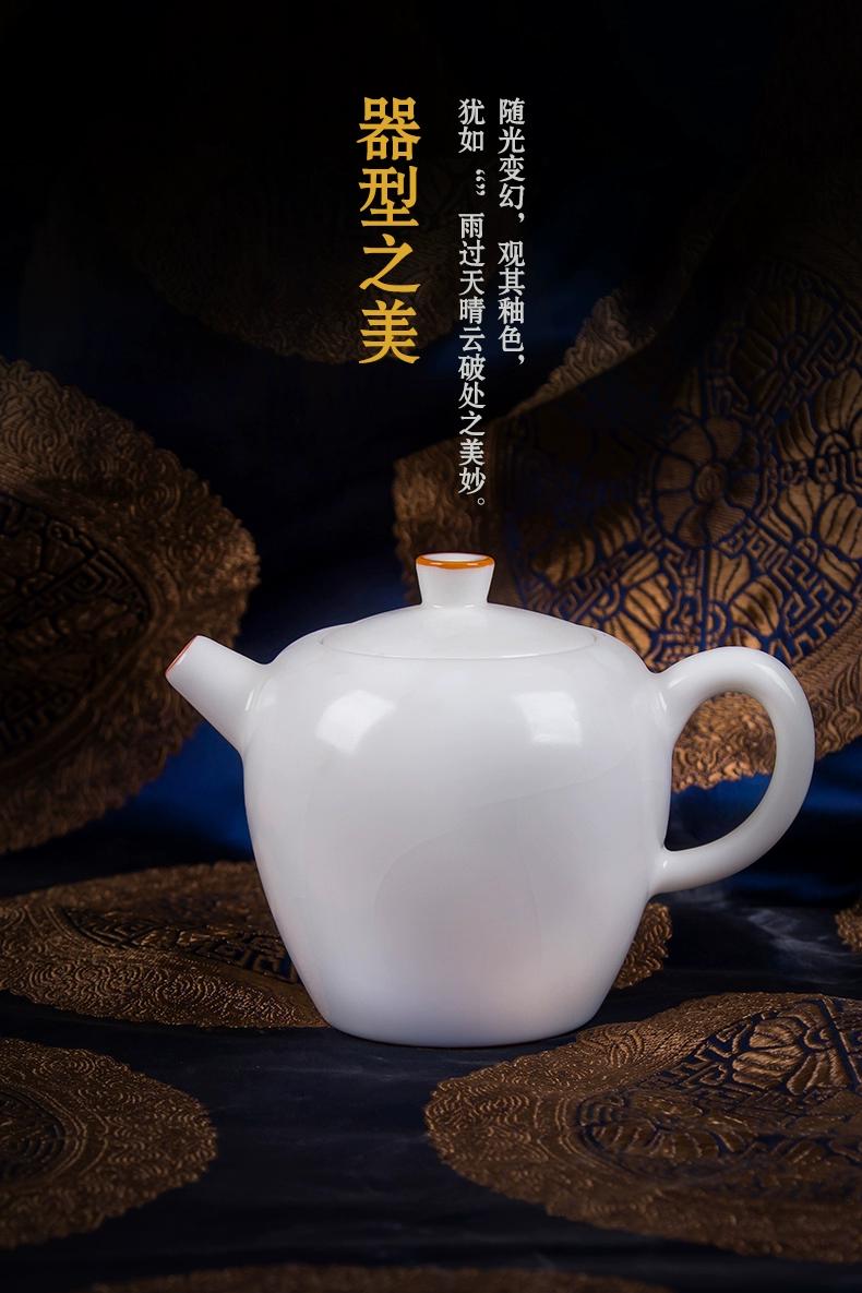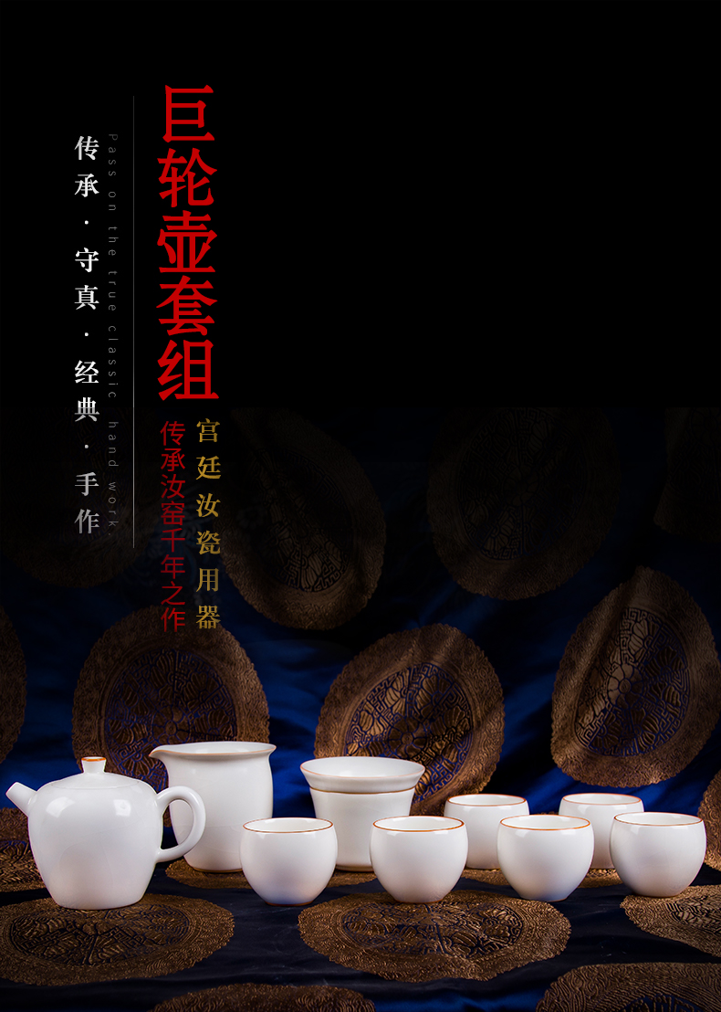 【特惠6折】元本道开片可养象牙白汝窑茶具套组家用中式巨轮壶套组竹节杯