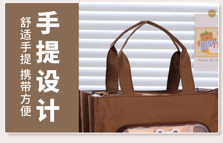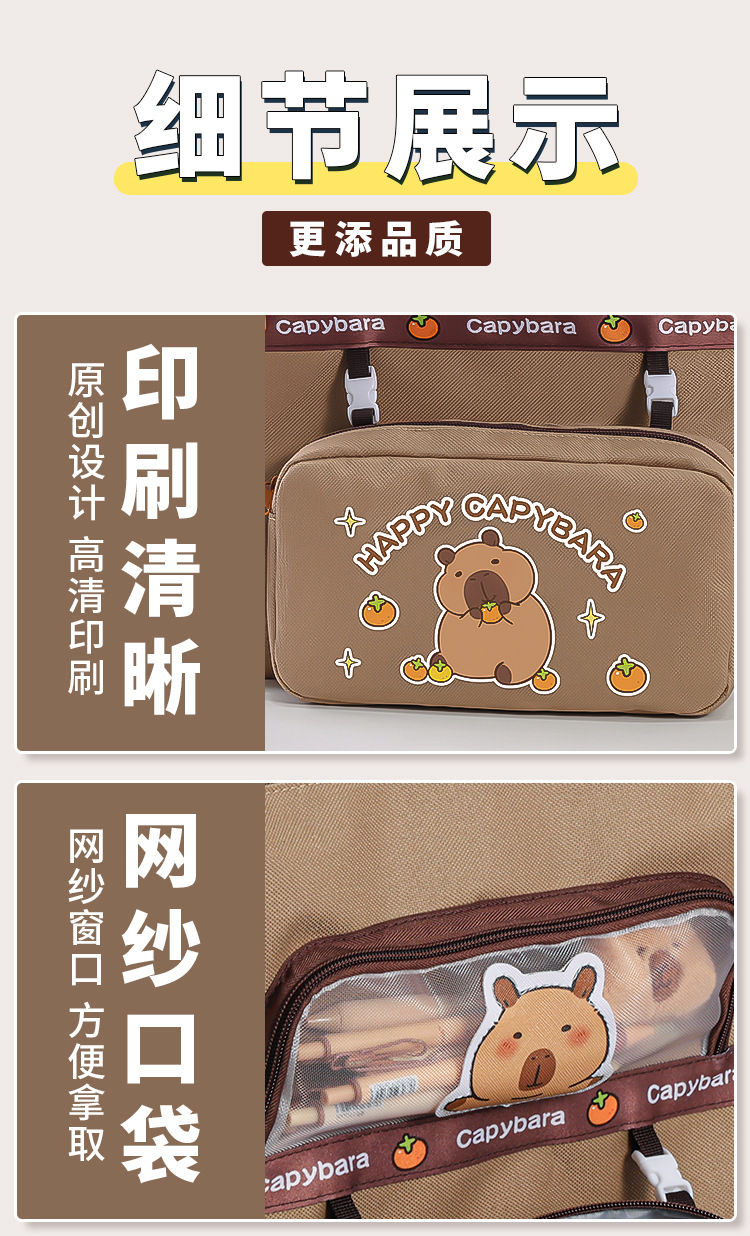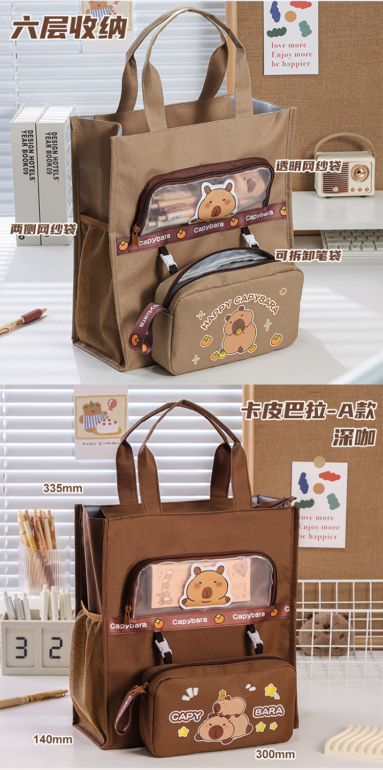 A4卡皮巴拉补习袋高颜值手提帆布包大容量便捷式儿童补课包美术袋