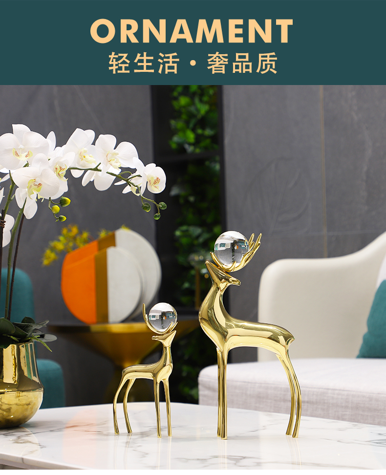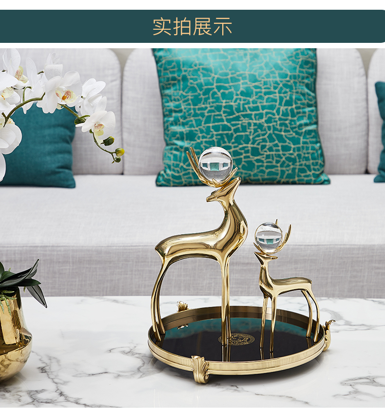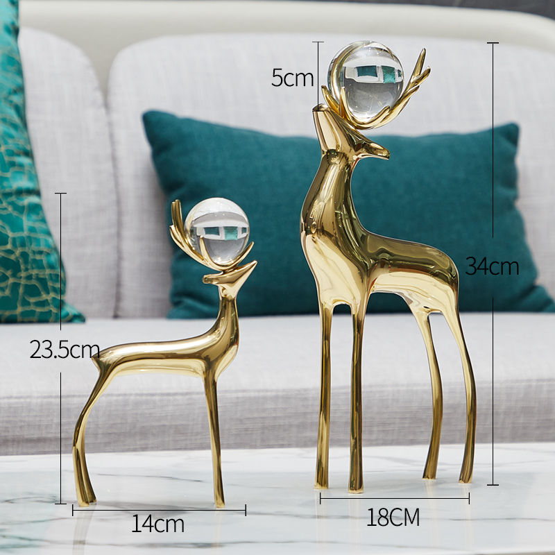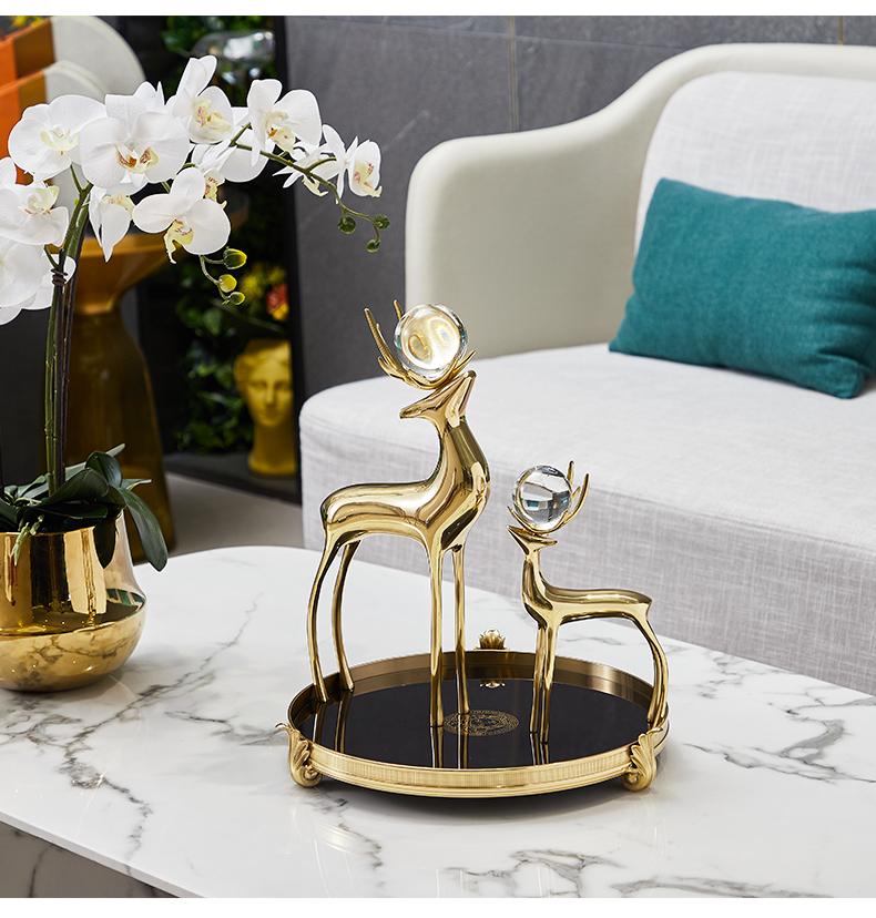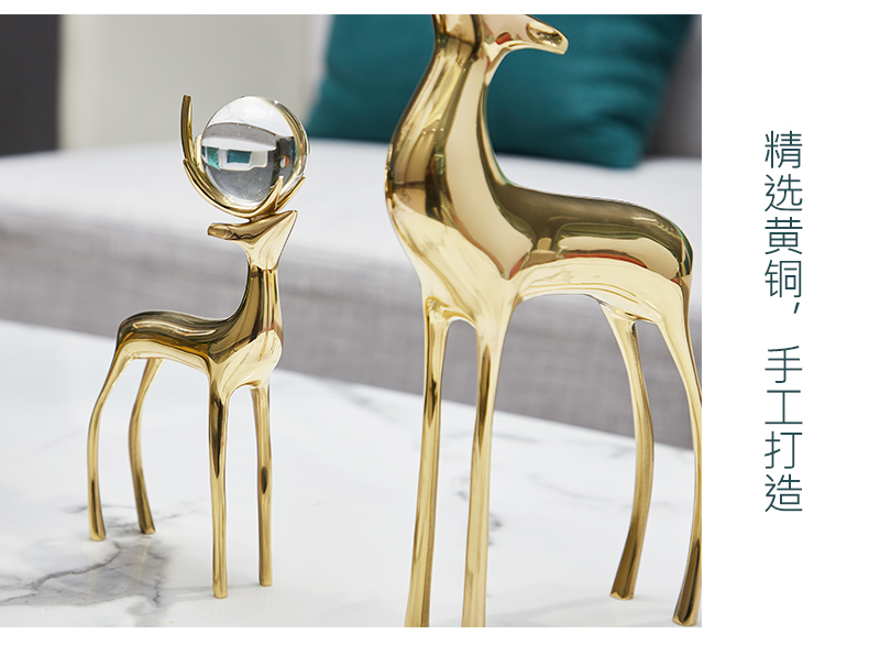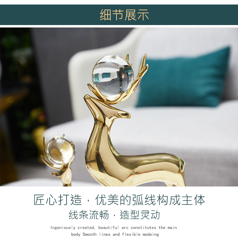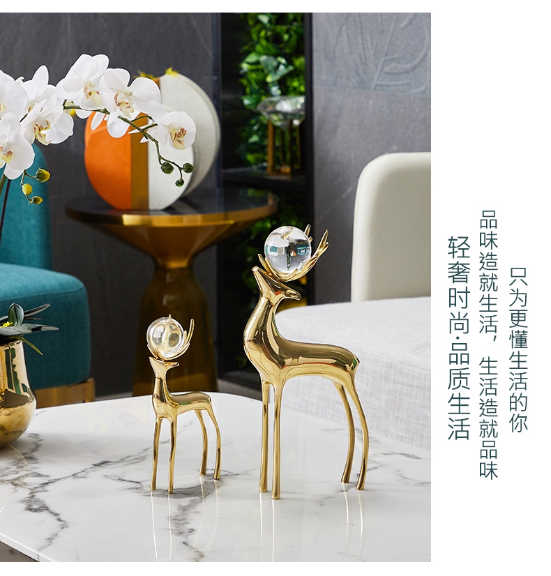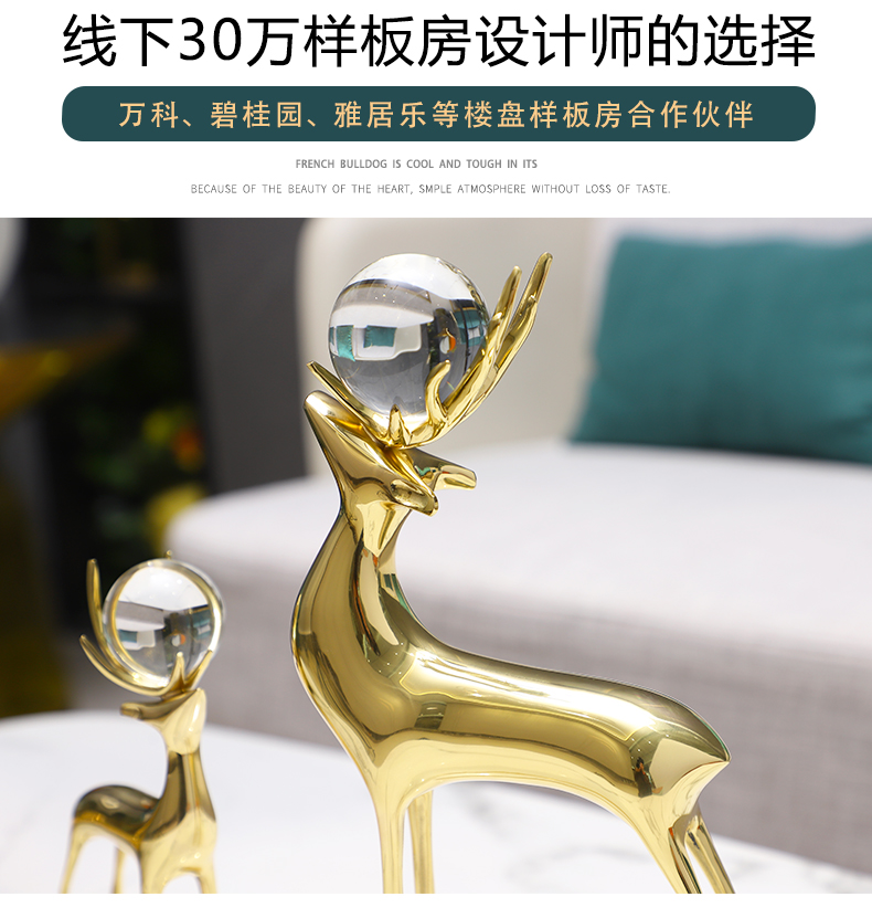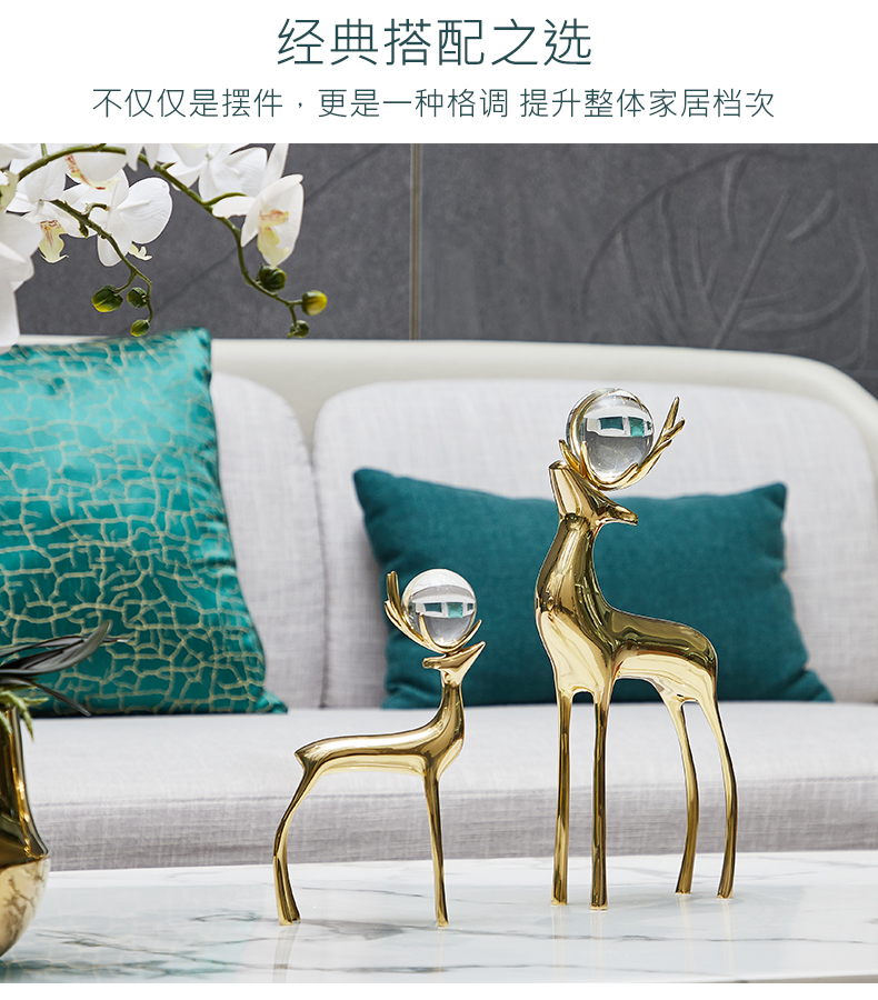 纯铜鹿摆件现代轻奢客厅电视柜酒柜水晶球鹿办公桌书房招财装饰品