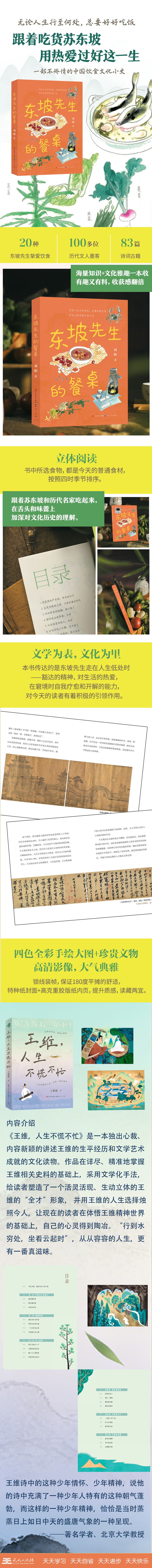 《东坡先生的餐桌》+《王维,人生不慌不忙》7-15岁 20种东坡先生挚爱饮食 100多位历史文人墨客 83篇诗词古籍