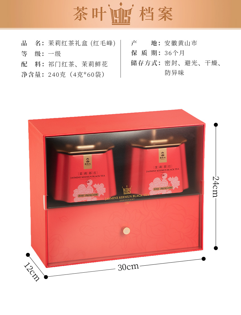 谢裕大祁门红茶 金冠系列 工夫红茶 红韵800听装(60g)