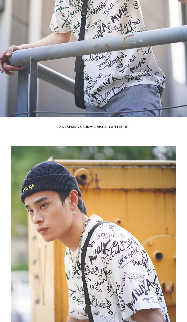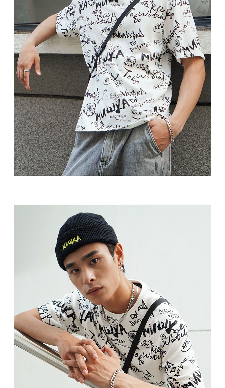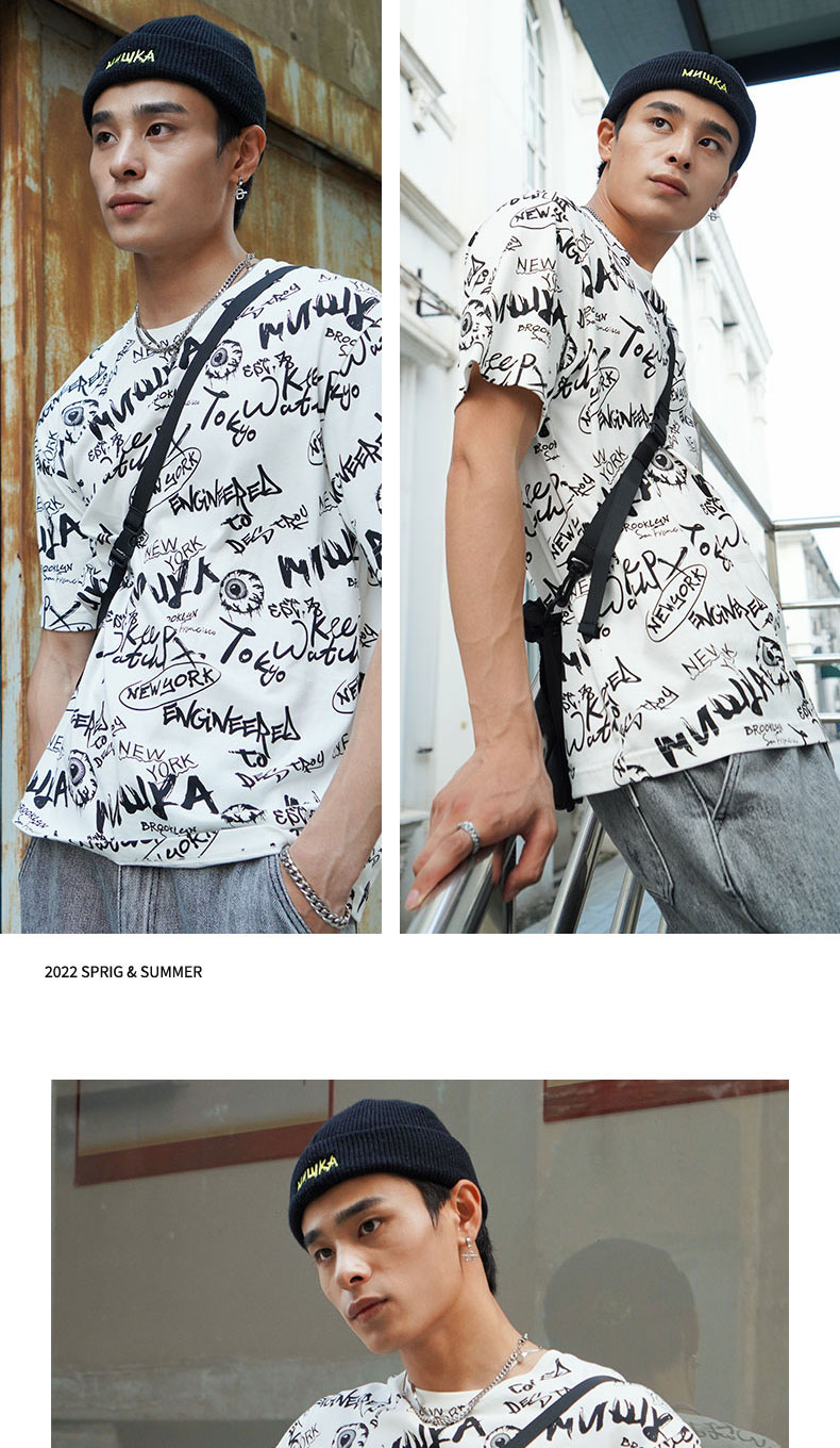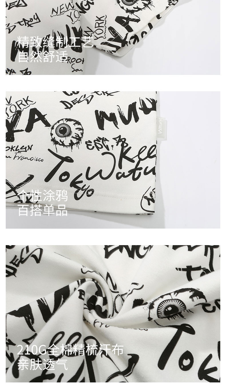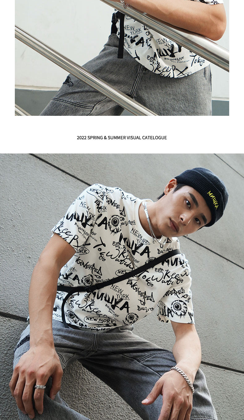 MISHKA大眼球潮牌2022春夏新品 满印涂鸦眼球印花圆领短袖T恤男女M21100039M