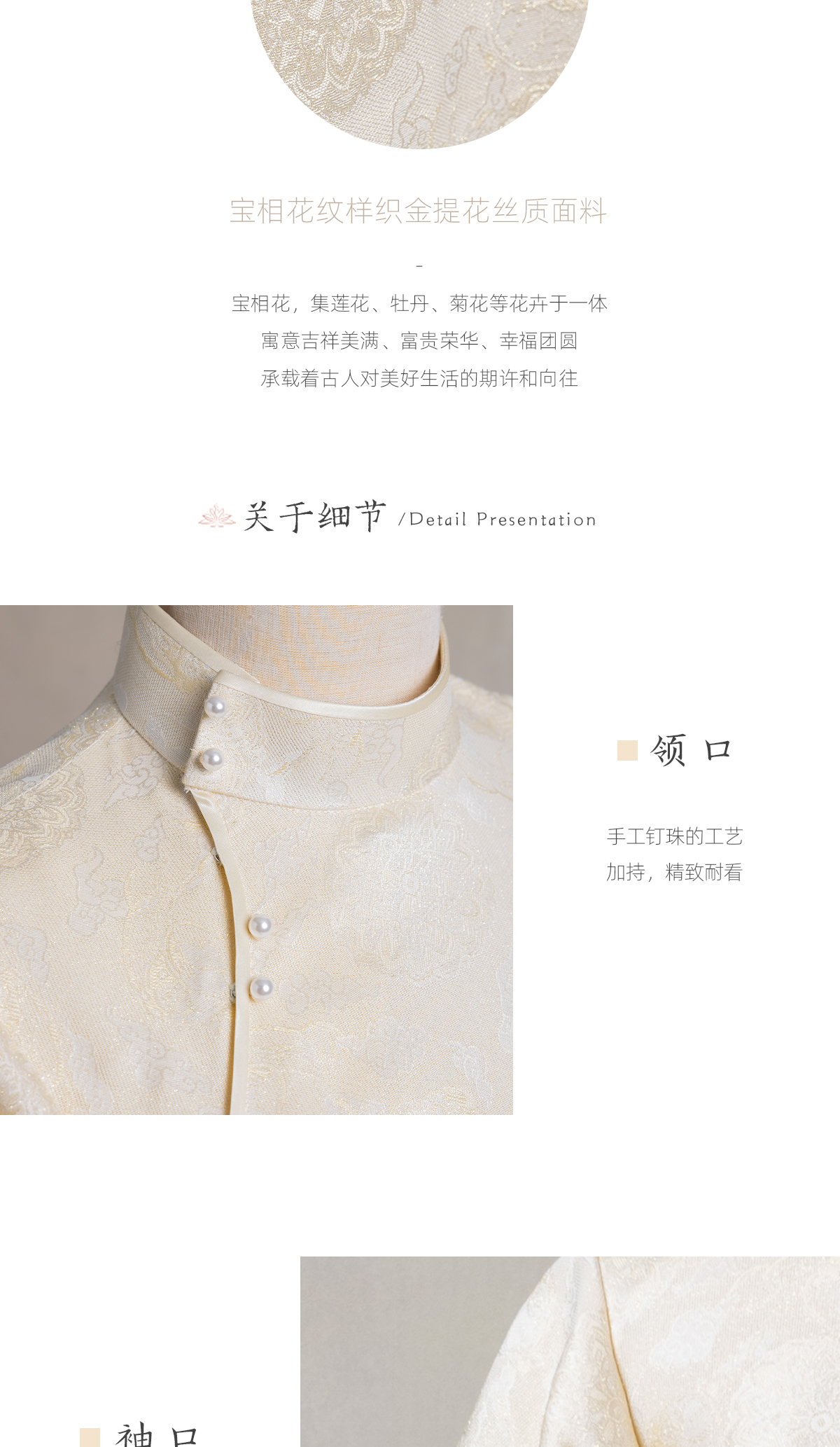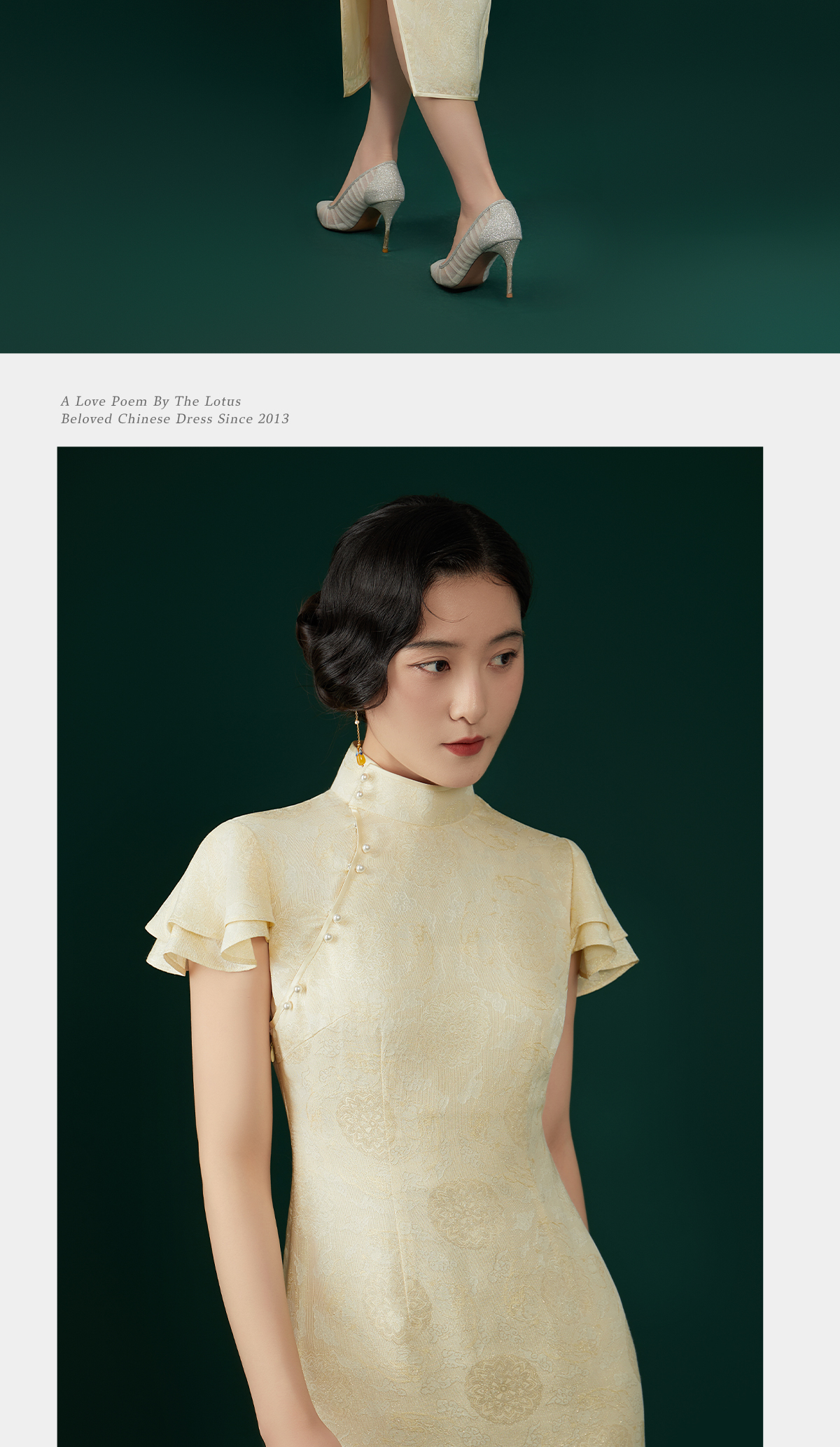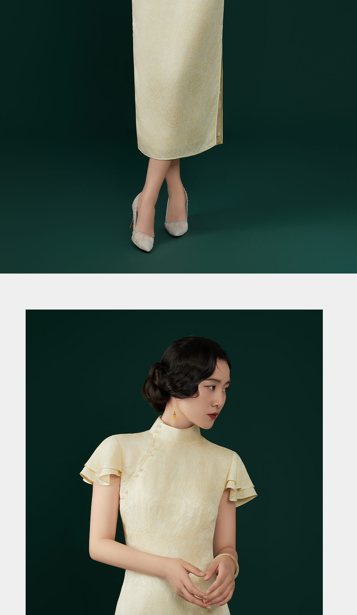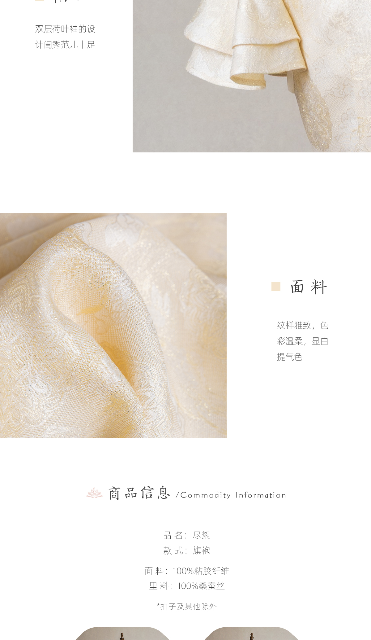 荷言GL 尽絮 宝相花纹织金提花白贝钉珠黄色旗袍双层荷叶袖显白温柔