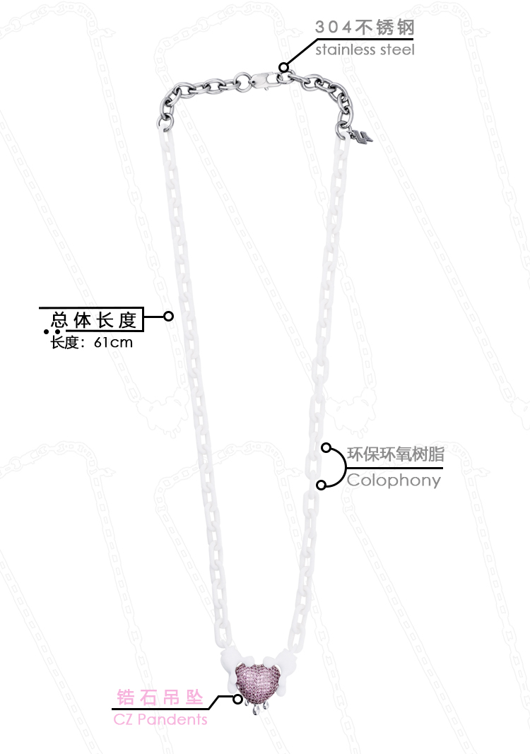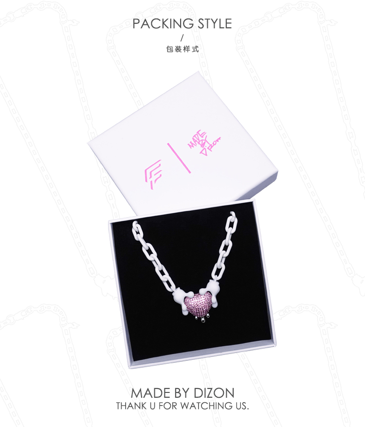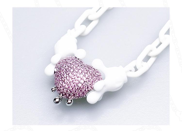 Madebydizon 潮流博主小熊 联名款 满钻粉红米奇爱心项链小众情侣