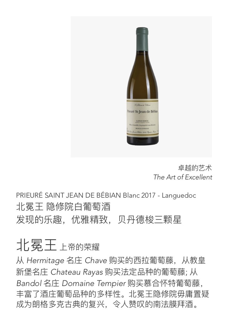 北冕王 隐修院白葡萄酒 Prieuré Saint Jean de Bébian Blanc 2017 - Pezenas - Languedoc