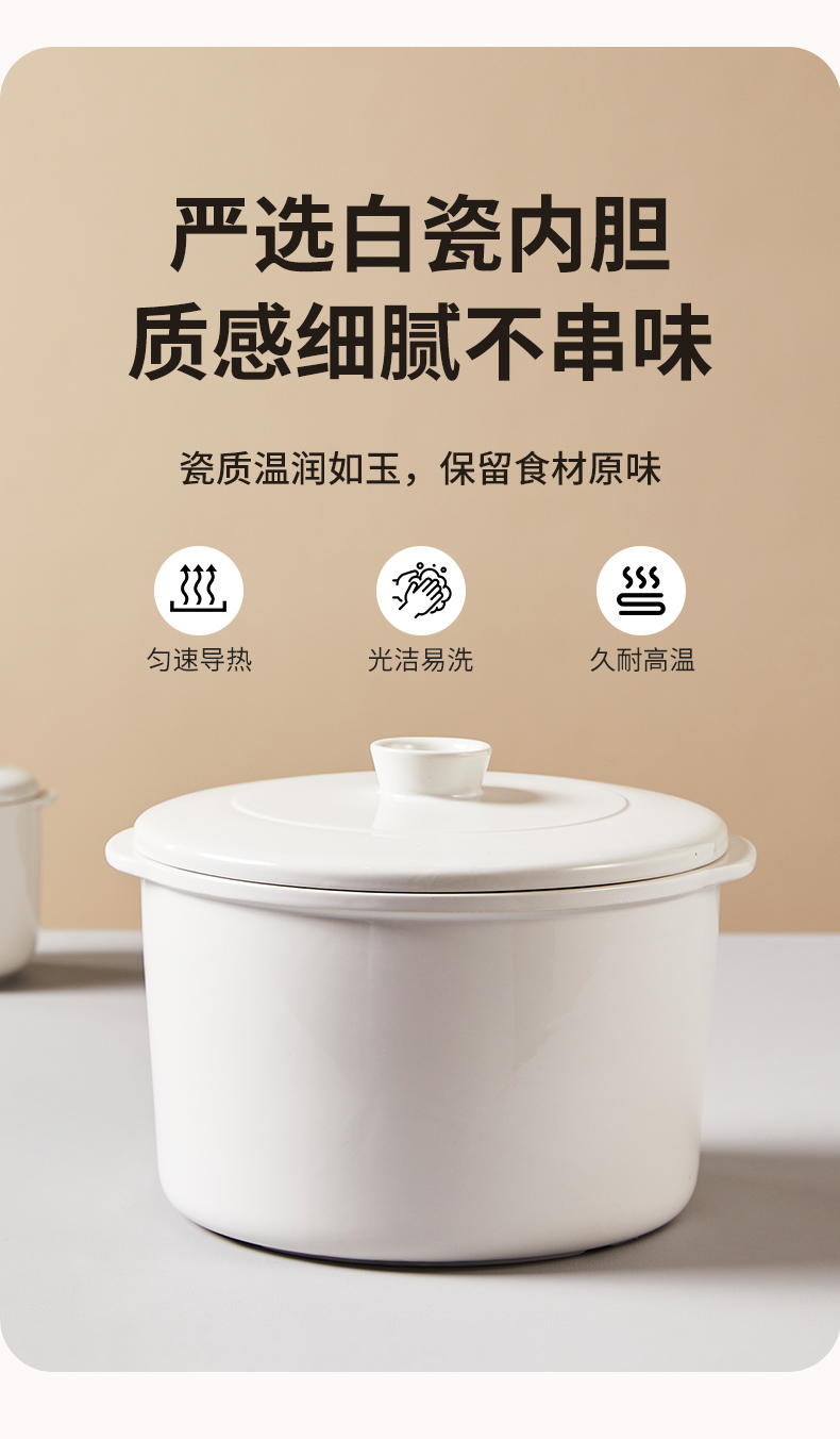 浦利顿婴儿辅食锅宝宝电炖锅煮粥锅BB煲煲汤熬粥1.6L家用宝宝蒸煮锅PLD-DZG-B600